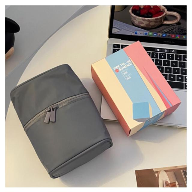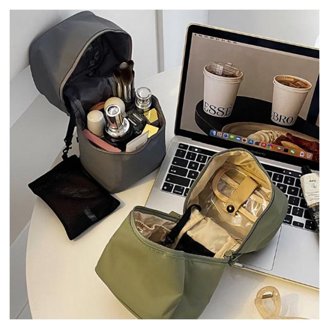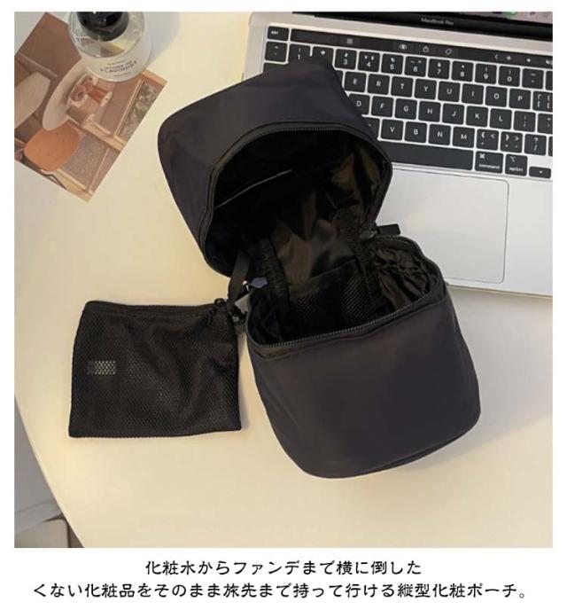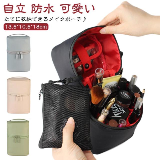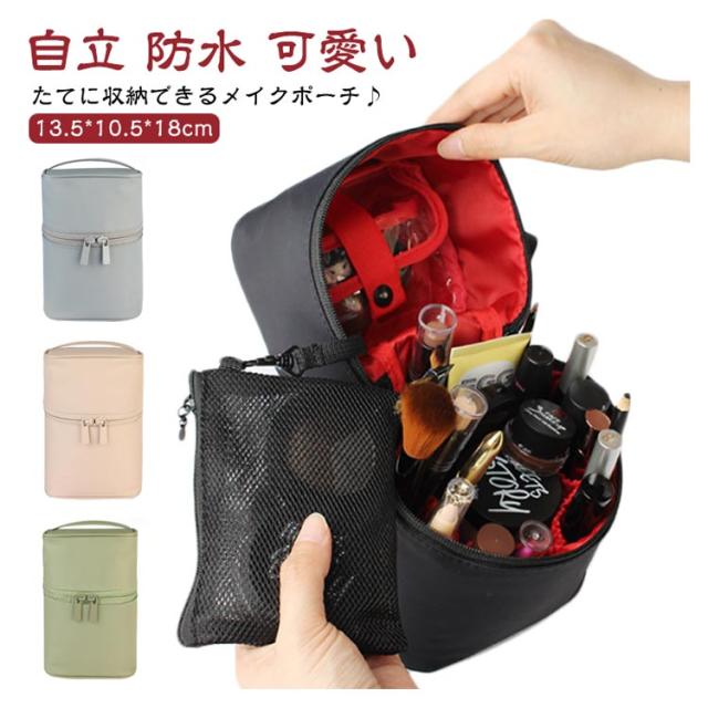 メイクポーチ コスメポーチ 縦型 化粧ポーチ 自立 防水 撥水 小さめ 可愛い 小型 スタンド たて型 立つ 使いやすい 縦長 筒形 化粧ポーチ 細長 縦 立てて収納 小物入れ 内側仕切りポケット 機能的 マチあり トラベルポーチ 仕切り コスメポーチ