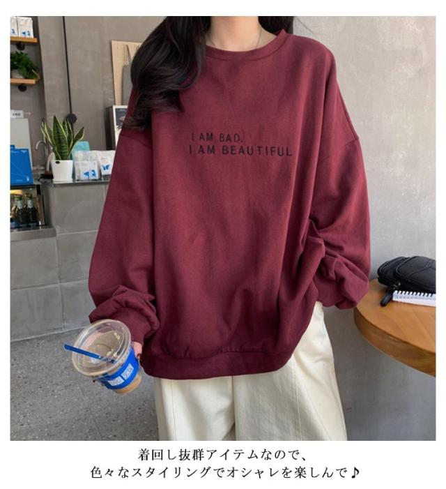 メンズライク♪クルーネックスウェット トップス スウェット クルーネック オーバーサイズ ロゴ カジュアル 大きいサイズ おしゃれ ゆったり