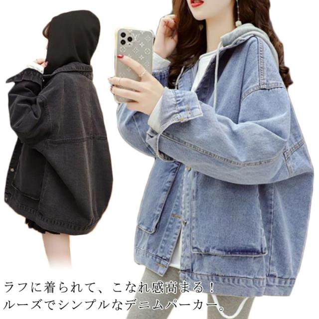 デニムジャケット デニム ジップアップ パーカー デニムパーカー レディースドッキング フードパーカー ペア トップス ライトアウター 羽織 長袖 フード フルジップ ブルゾン ジャケット はおりもの 着回し 大きいサイズ 大きめ ゆったり