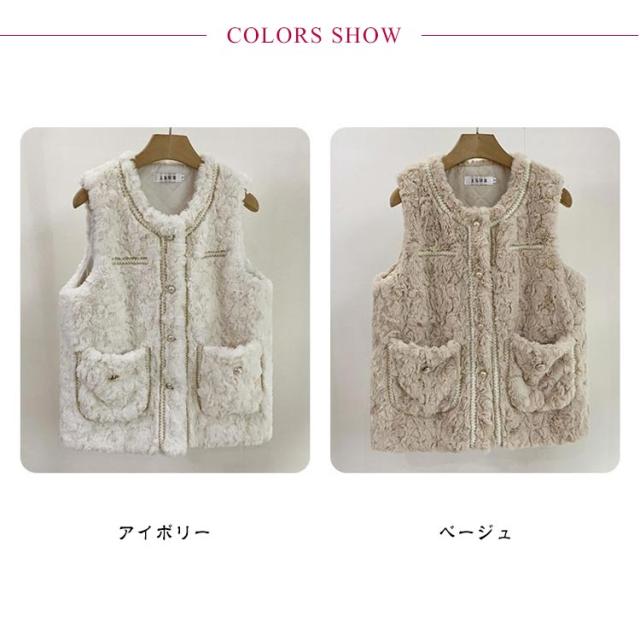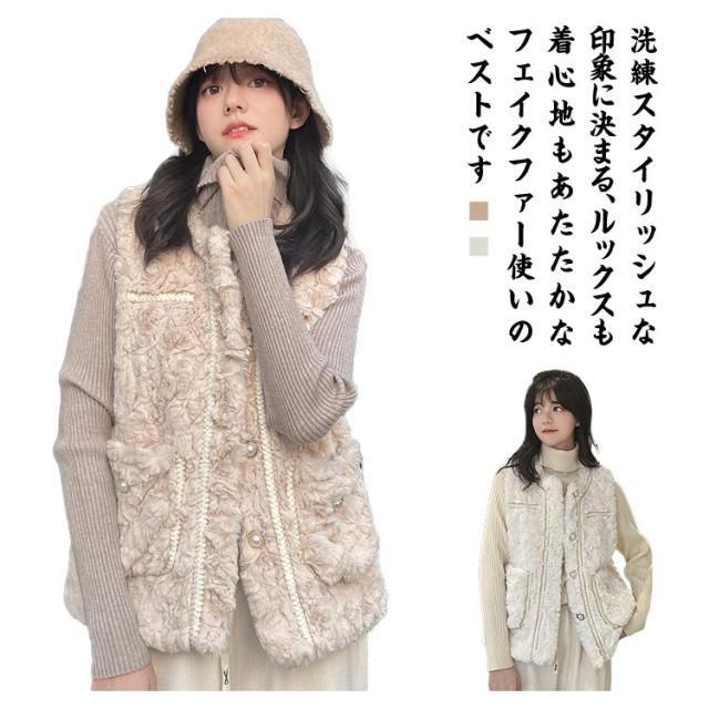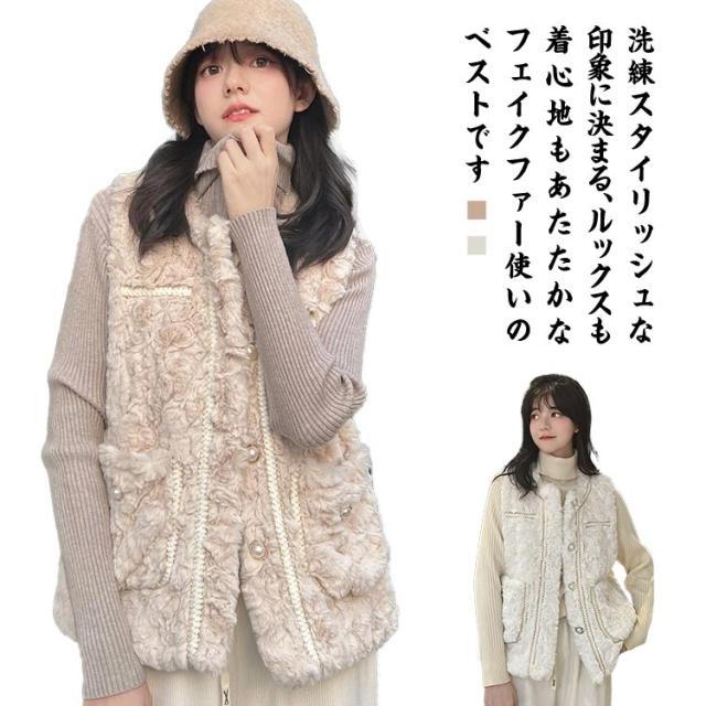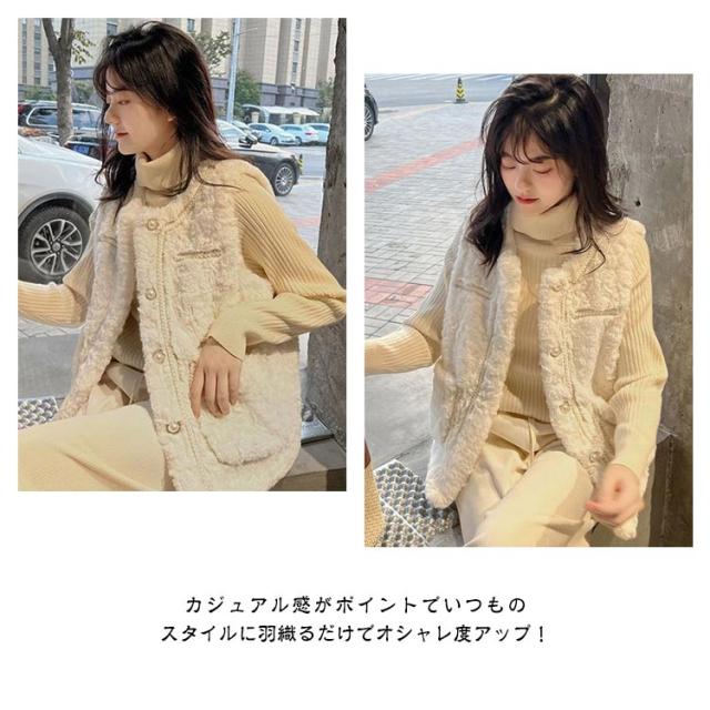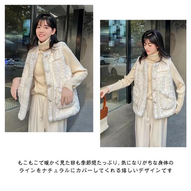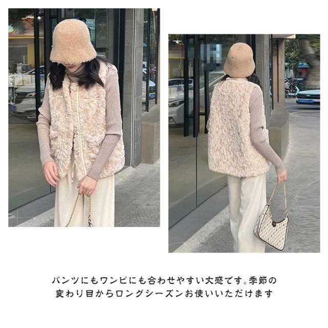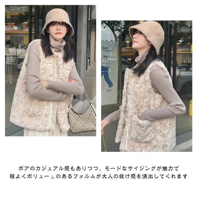 ボアベスト フェイクファーベスト アウター レディース ムートン もこもこ エコファー ノーカラー 羽織り ジレ 前開き ボアベスト アウター コート 大きいサイズ ゆったり 秋冬 防寒 軽い 厚手 オーバーサイズ おしゃれ きれいめ カジュアル