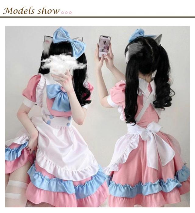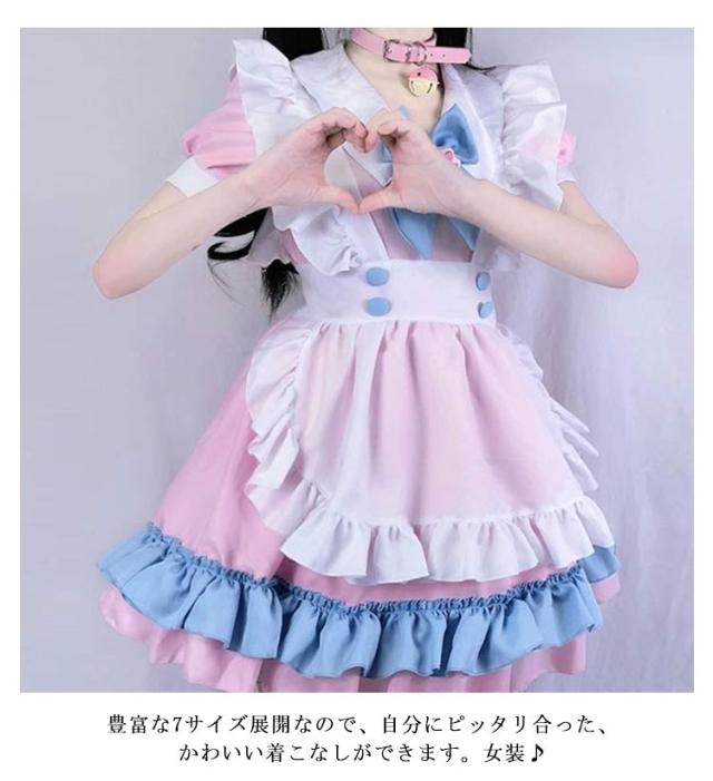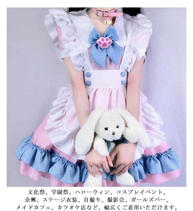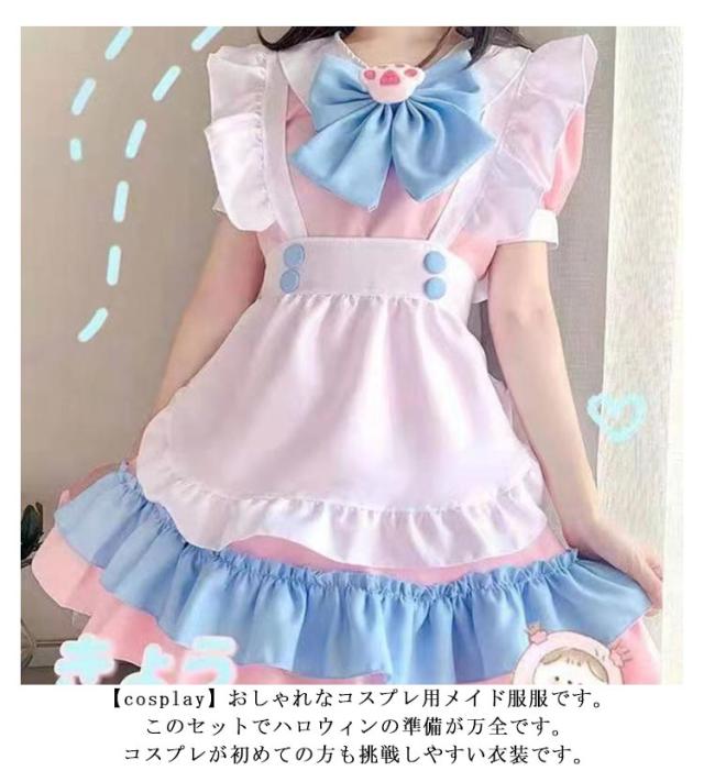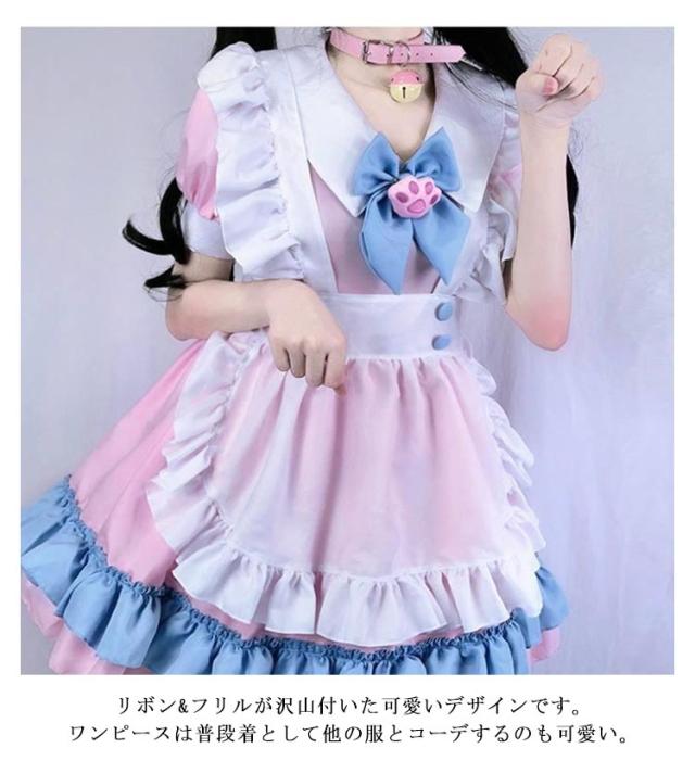 コスプレ メイド服 半袖 可愛い ワンピース レディース コスチューム ハロウィン 仮装 衣装 バレンタインデー こすぷれ コス おすすめ ピンク メイド服 可愛い 男ウケ 大きいサイズ 猫の爪 ネコ リボン 頭飾り セクシー メイド 定番 かわいい フリル ゆめかわ