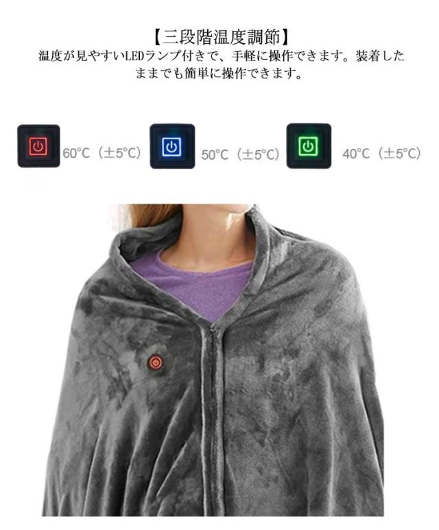 | 【USB給電式】USB給電式の電気毛布は、アダプターやパソコン、カーチャージャーのUSBポートから給電できるのでとても便利です。また、コードレスで使えるため取り回しがよいのもメリットです。USBポートが設けられたポータブル充電器()などから給電することが可能。車内泊やオフィスなどで使用したい方におすすめです。 【三段階温度調節】温度が見やすいLEDランプ付きで、手軽に操作できます。装着したままでも簡単に操作できます。 【コーラルフリース】全身ぽかぽか、柔らかな肌触りで心地良い電気毛布です。ふんわりと癒される、優しい温もりで寒い冬もあったか快適です。コーラルフリースは両面ともふわふわで、ずっと触っていたくなるような肌触りで、心も体も安らぎます。 【お手入れしやすい】洗濯機での丸洗いが可能なので清潔にご使用いただけます。 | |