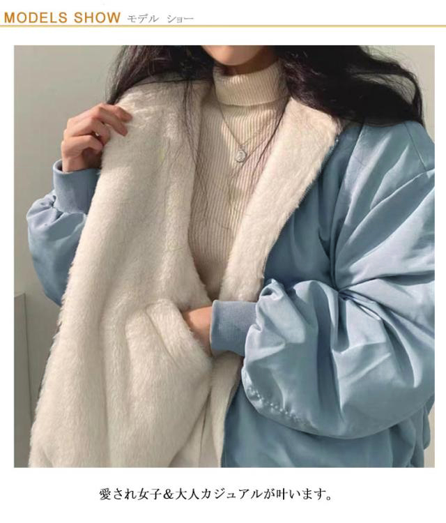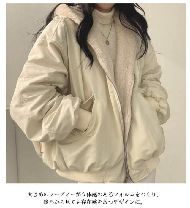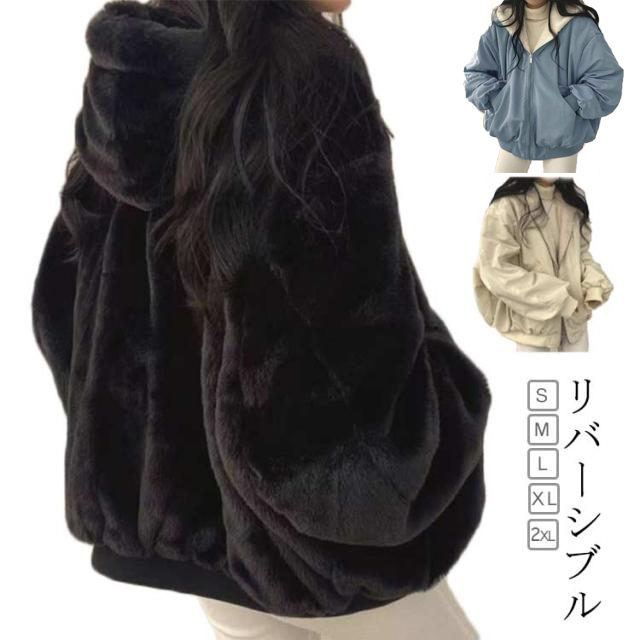 ファーブルゾン フード付き レディース フェイクファー ブルゾン ジャケット ファーコート ボリューム リバーシブル ファー コート エコファー パーカー 防寒 アウター