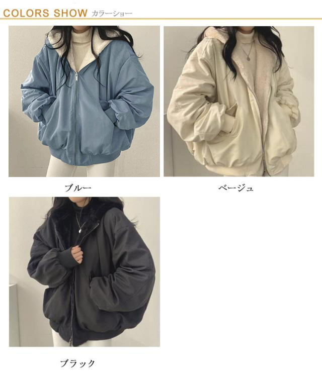 | リバーシブル エコファー仕立てのブルゾンは羽織るだけでトレンド感がプラス。 両サイドにはスマホを入れるのに便利なポケット付き 大きめのフーディーが立体感のあるフォルムをつくり、後ろから見ても存在感を放つデザインに。 袖口はリブなのでしっかりと外気の侵入も防いでくれます。 ゆったりと肩を落としたオーバーサイジングで 厚手のニットとの相性も抜群。 シンプルなニットワンピの上にさらっと羽織るだけで 愛され女子&大人カジュアルが叶います。 | |
