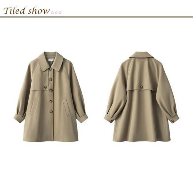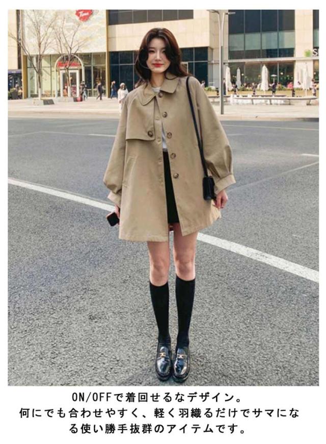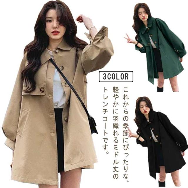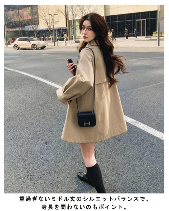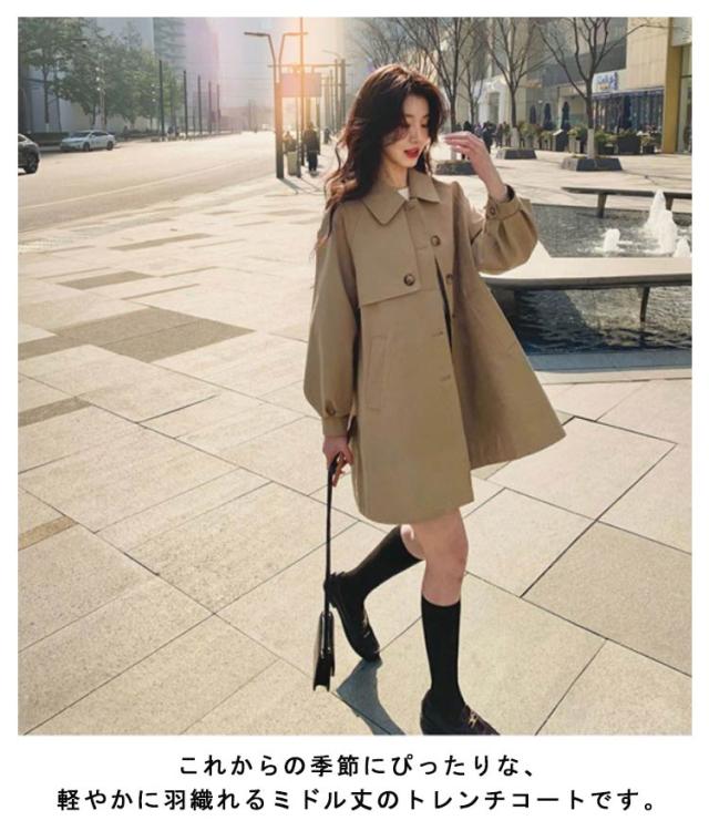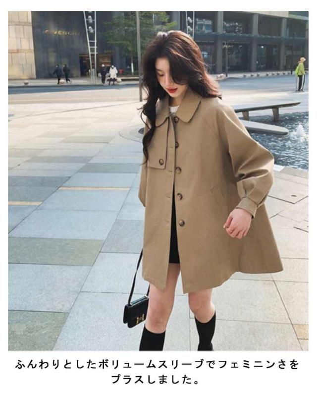 ステンカラーコート ボリュームスリーブ トレンチコート レディース 春 秋 冬 コート ミドル丈 裏地付き Aライン フレア ステンカラー コート トレンチ ゆったり ハーフコート 羽織り 大人 カジュアル オフィス 通勤 通学 スプリングコート 【送無】