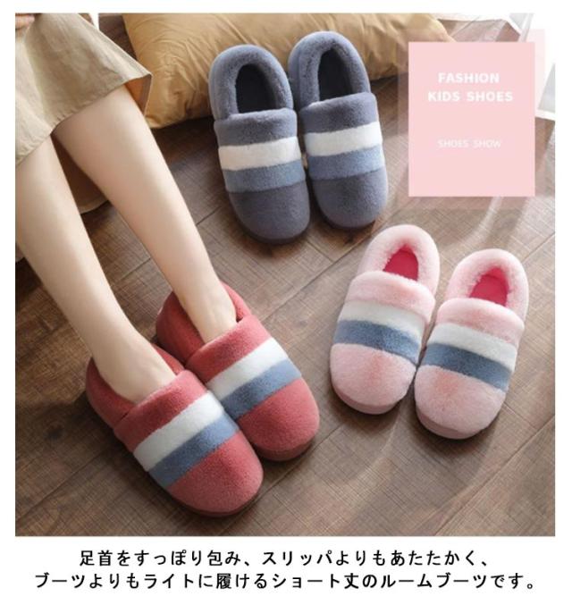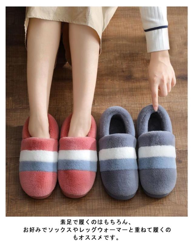 もこもこスリッパ レディース メンズ ルームシューズ 冬 もこもこ ふわふわ スリッパ かかと付き あったか マイクロファイバー 室内履き ルームブーツ 足首 足元 暖かい 防寒 発熱 配色 ボーダー柄 大人 かわいい おしゃれ 洗える 滑り止め 【送無】