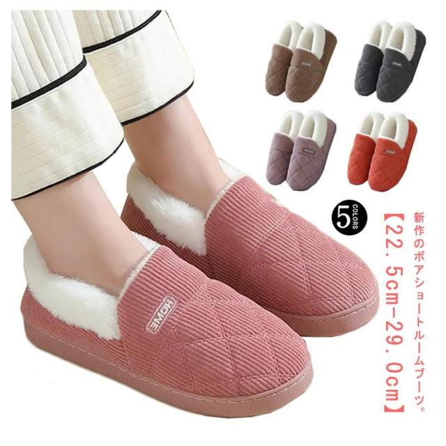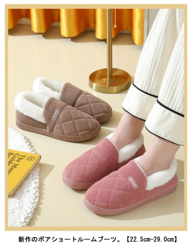 | 新作のボアショートルームブーツ。【22.5cm-29.0cm】 足先までたっぷりとボアが敷き詰められているので暖かさばっちり◎ 足底部分はクッション性のある素材を用いてやわらかな履き心地が◎ 滑りにくいゴムソールで滑りにくく歩きやすい。 素足で履くのはもちろん、お好みでソックスやレッグウォーマーと重ねて履くのもオススメです。 | |