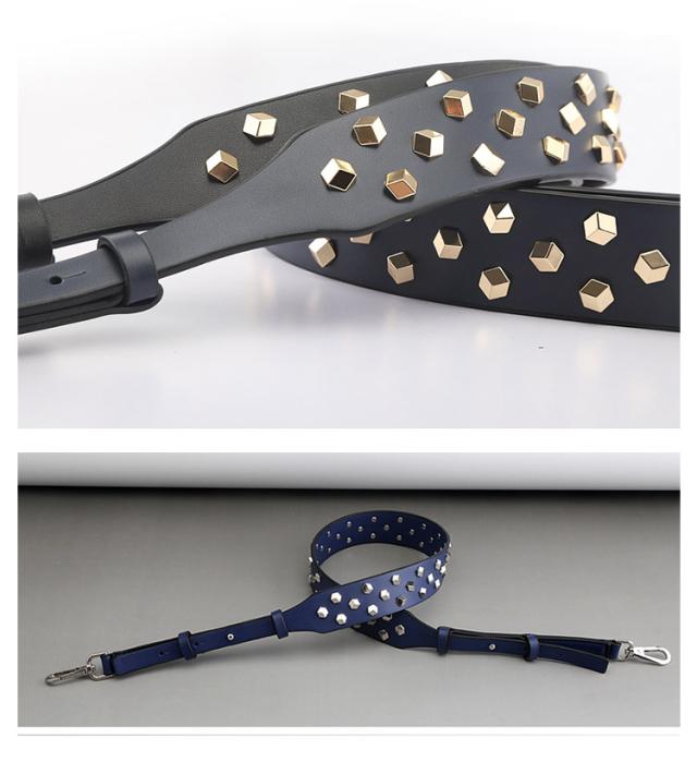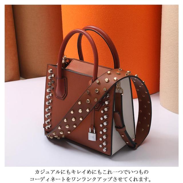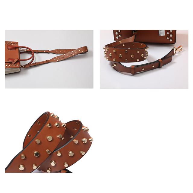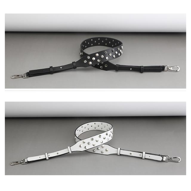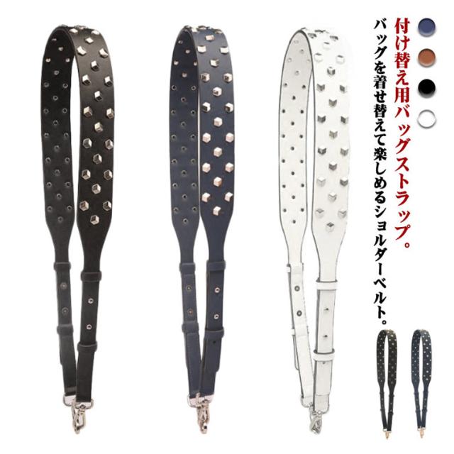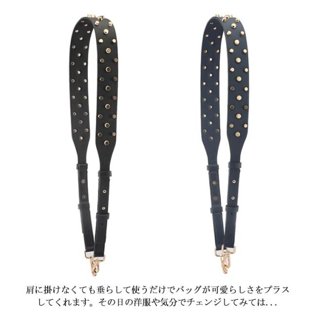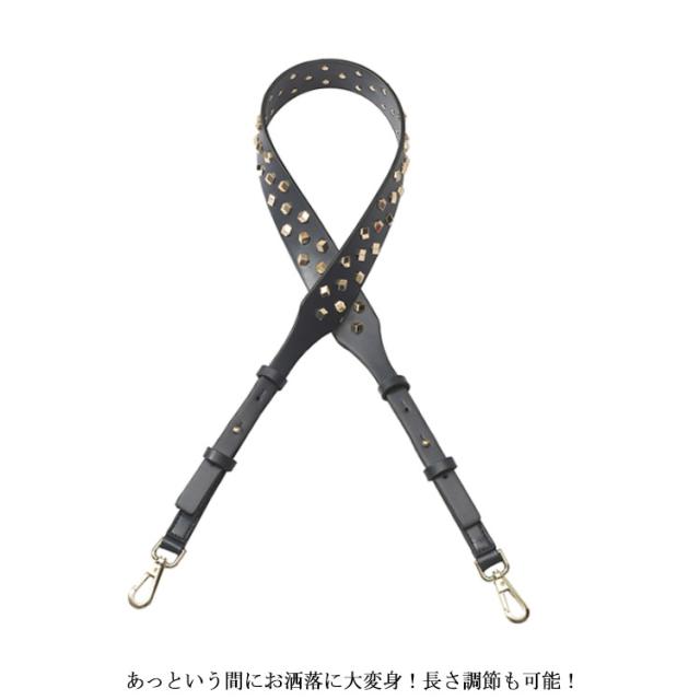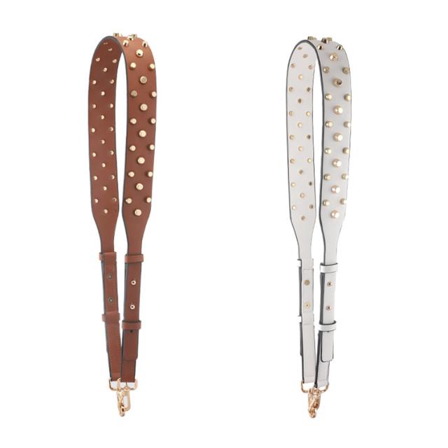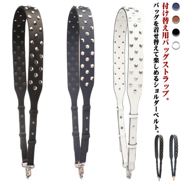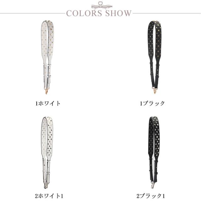 ショルダーストラップ バッグ レディース スタッズ付き デコストラップ 付け替え 単品 斜め掛けストラップ 肩掛け 長さ調節可能 取り外し可能 スタッズベルト ショルダー紐 幅広 バッグ用 アクセサリー PUレザー ブラック ブラウン ホワイト