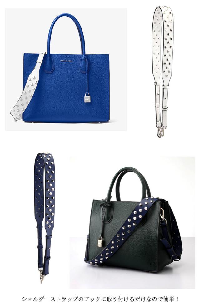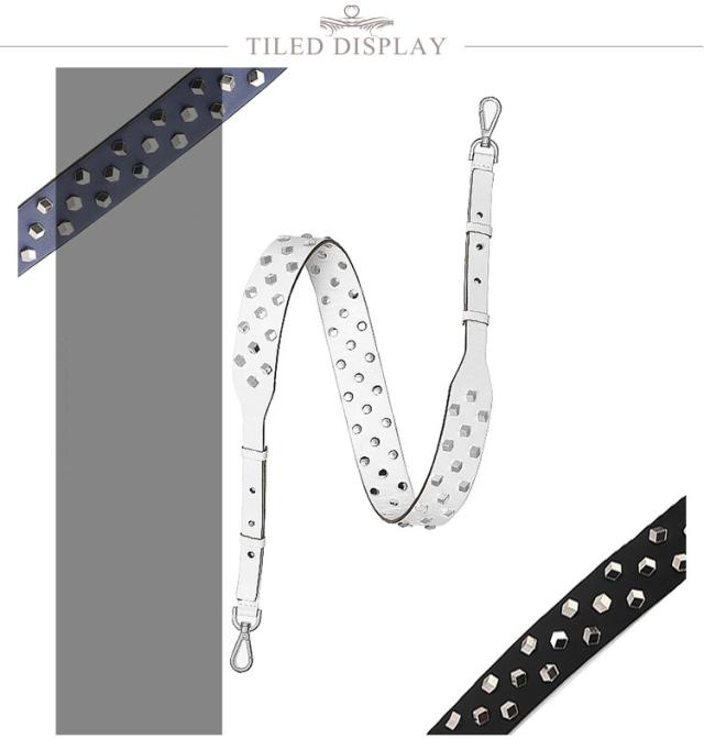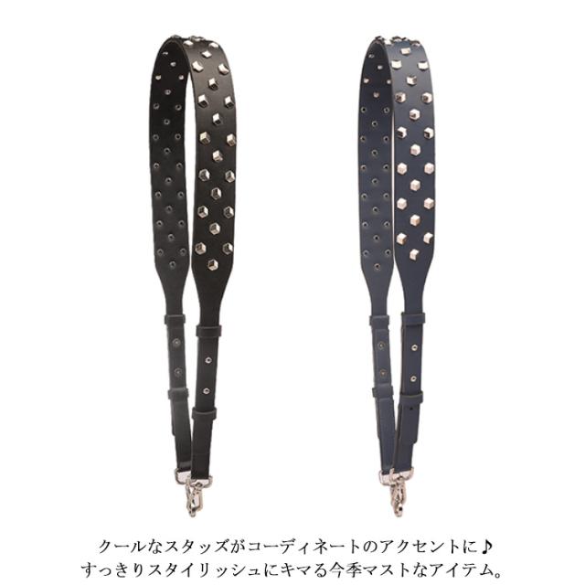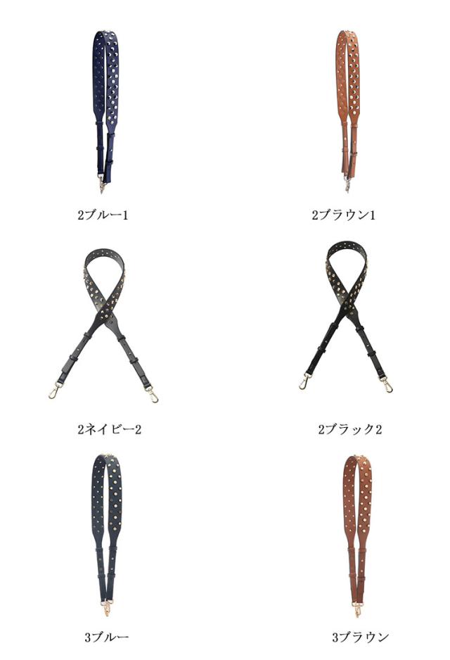 | 付け替え用バッグストラップ。バッグを着せ替えて楽しめるショルダーベルト。 ショルダーストラップのフックに取り付けるだけなので簡単! あっという間にお洒落に大変身!長さ調節も可能! クールなスタッズがコーディネートのアクセントに♪すっきりスタイリッシュにキマる今季マストなアイテム。 カジュアルにもキレイめにもこれ一つでいつものコーディネートをワンランクアップさせてくれます。 肩に掛けなくても垂らして使うだけでバッグが可愛らしさをプラスしてくれます。その日の洋服や気分でチェンジしてみては... | |