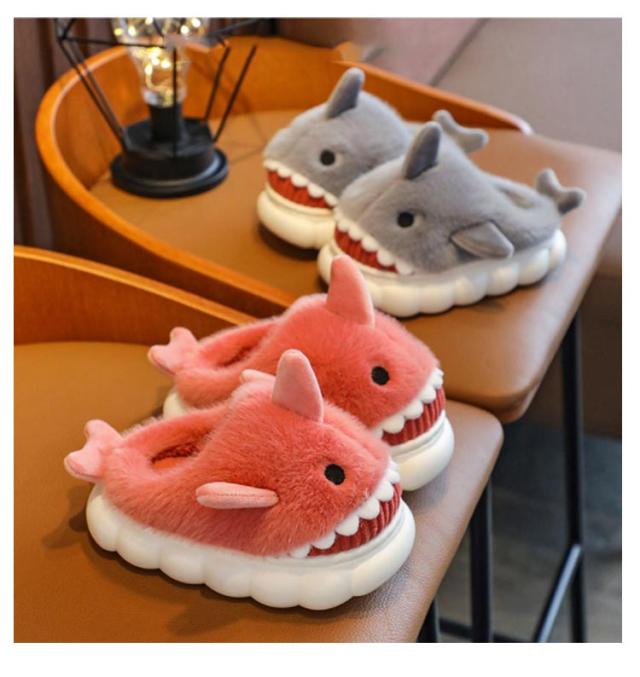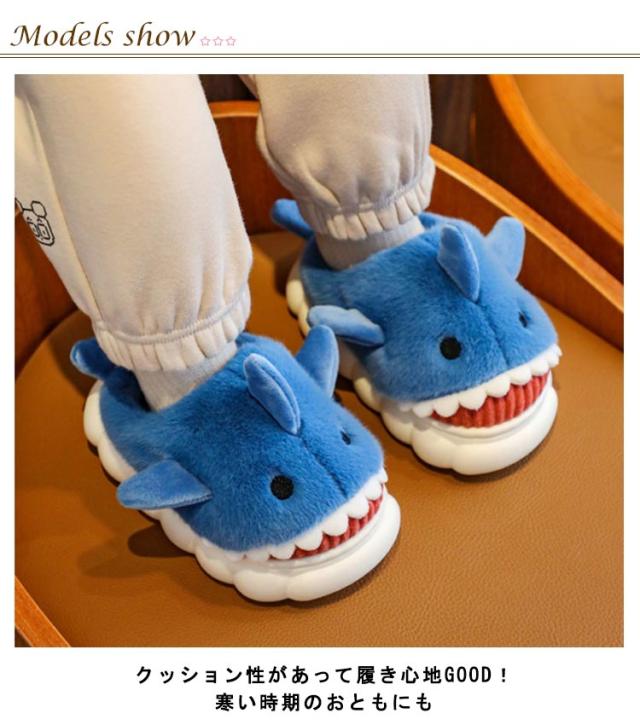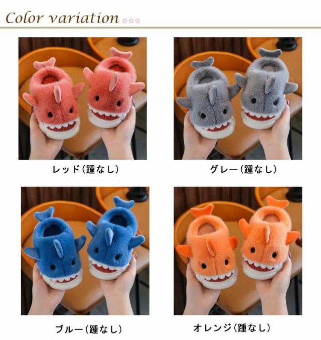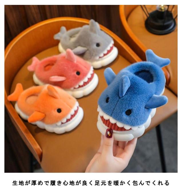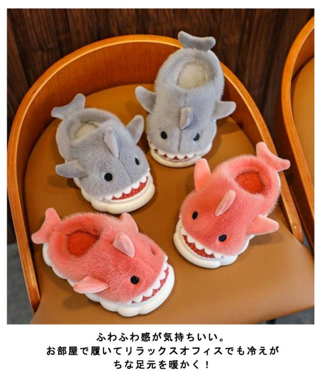 ルームシューズ 冬用 もこもこ ふわふわ ファー スリッパ かかと付き キッズ 子供 女の子 男の子 動物 アニマル サメ 鮫 スリッパ かわいい おもしろ 冬 あったか ルームブーツ 防寒 保温 足元 暖かい 室内履き 軽量 滑り止め 男女兼用 【送無】