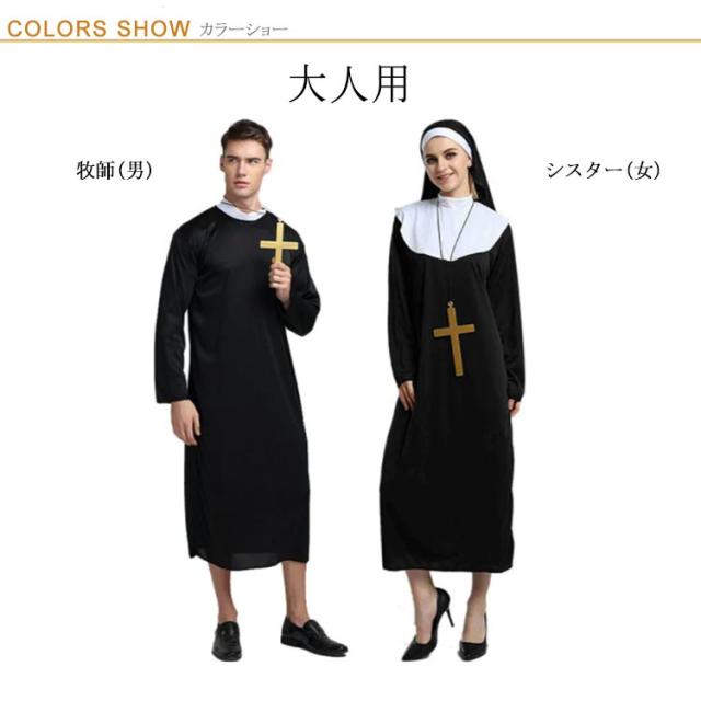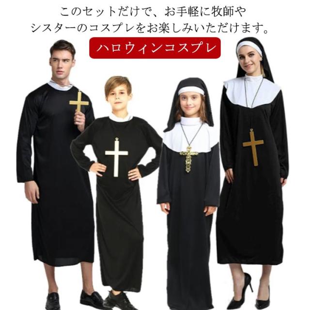 ハロウィン コスプレ 衣装 牧師 修道女 シスター 変装 仮装 クルス 十字架 ベール 大人用 子供用 キッズ メンズ レディース 男の子 女の子 修道士 聖女 コスチューム コスプレ衣装 パーティー イベント セット Cosplay 大きいサイズ 【送料無料】