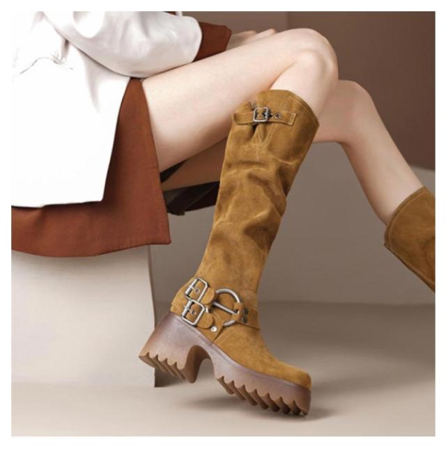 くしゅくしゅ ロングブーツ レディース ベルトデザイン ロングブーツ エンジニアブーツ ロング丈 太ヒール バックルベルト PUレザー 合皮 裏起毛 くしゅくしゅブーツ ふくらはぎ ゆったり ブーツ 大きい 筒周り 太め 歩きやすい
