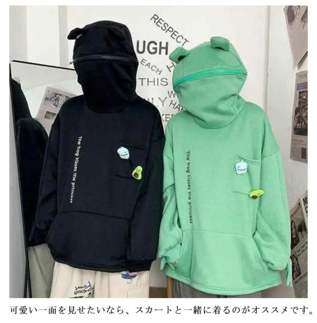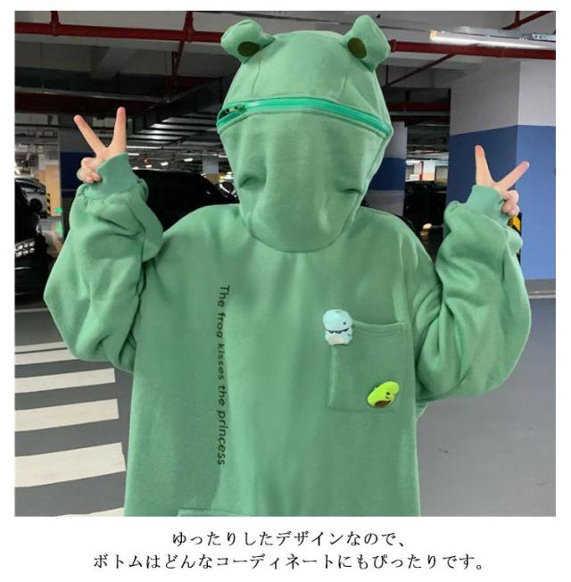カエル パーカー プルオーバー レディース メンズ カップル トップス 裏起毛 パーカー 男女兼用 長袖 フード付き 韓国風 蛙 かえるパーカー 萌え トップス 面白い 動物 アニマル カジュアル フード付き カップル服 個性的