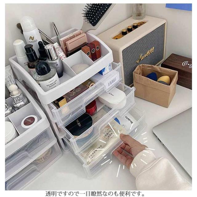 卓上収納ケース 引き出し 化粧品収納 収納ボックス プラスチック 透明 2段 3段 4段 小物収納 小物入れ デスク収納 机上収納 積み重ね 机上ラック 収納用品