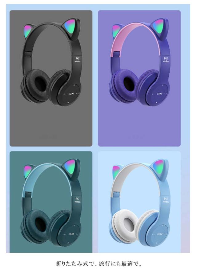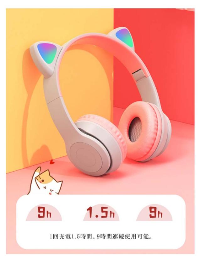 | 可愛い猫耳ヘッドホン。 音楽を楽しんでいる間に、ライトが同時に変わり、きらきらでとてもかわいく見えます。 折りたたみ式で、旅行にも最適で。 1回充電1.5時間、9時間連続使用可能。 女性ペレイヤーだけでもなく、子どもの中にも大人気です! Bluetooth5.0技術を採用し、10メートルの感応範囲です。 | |