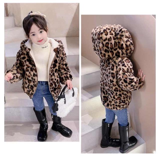 ヒョウ柄 ボアコート ジャケット 女の子 可愛い もこもこ ファーコート 耳 ボアフリース エコファー 子供服 ふわふわ 防寒 フード付き あったか ベビー 送料無料