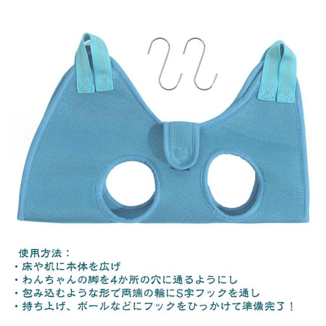 ペット グルーミング ハンモック 爪切り 犬 猫 トリミング 耳掃除 体拭き 小型犬 中型犬 ペット用品 拘束バッグ ハーネス グルーミングハンモック S字フック付き ペット美容 お風呂 入浴 ドライヤー 歯磨き 服薬 目薬 介護 吊り下げ メッシュ 通気性