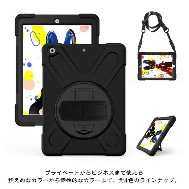 | コスパの良い安心の耐衝撃ハードカバー。子供用としても安心して使えるipadケース。 マジックテープにより男女問わずフリー調整可能。360度の回転式により縦持ちや横持ちも自由、誤って手を滑らせての落下を防止。 ショルダーストラップにより肩掛けが可能になり両手が自由に!プライベートはもちろんプレゼン/検針/棚卸などの業務端末用として大好評。 落下防止や持ち運びにも便利!4隅すべてにストラップホールがあり、ストラップの通し方次第で横掛け・縦掛け・ナナメ掛けなどが可能。 プライベートからビジネスまで使える控えめなカラーから個性的なカラーまで、全4色のラインナップ。 | |