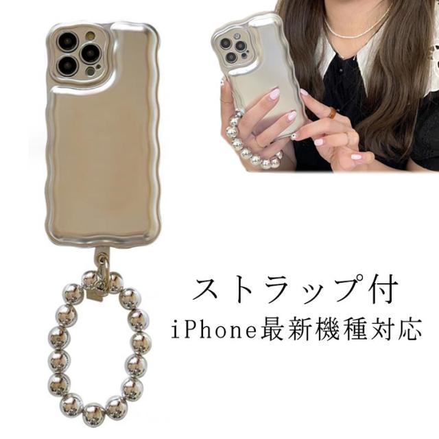 スマホケース 韓国 iphone15 ケース iphone 15 pro promax plus 韓国 iphone14pro iphone14promax 14 iphone13 13 iphone12 12 12pro iphone11 ストラップ付き ケース 韓国 なみなみ リング シルバー 可愛い おしゃれ ソフト ケース アイフォン シルバー 送料無料