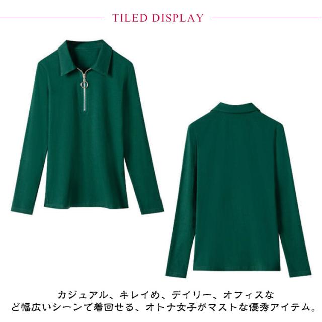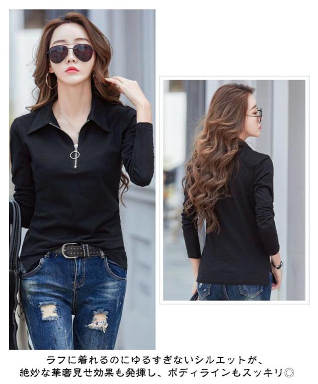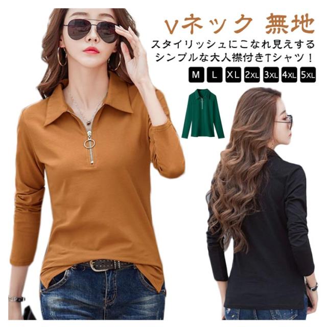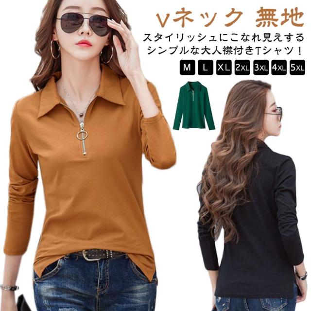 長袖tシャツ Tシャツ レディース 長袖 ポロシャツ レディース 春 秋 冬 カットソー Vネック とろみ スキッパー ハーフジップ タイト スリム OL 通勤 通学 ビジネス オフェス 大きいサイズ 白 黒 ゆったり カジュアル 無地