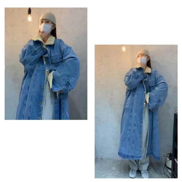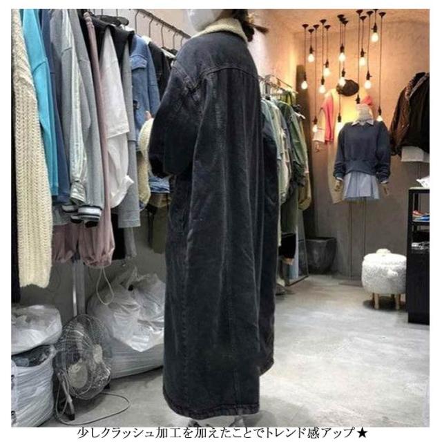 デニムロングワンピース デニムジャケット レディース 羽織 アウター トレンチコート ゆったり モコモコ 前開き 裏ボア 長袖 デニムコート ロングコート ロングジャケット 裏起毛 折り襟 厚手 あったか 暖かい お洒落 カジュアル 冬 20代 30代 40代 送料無料