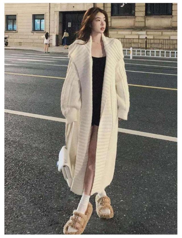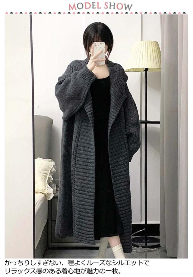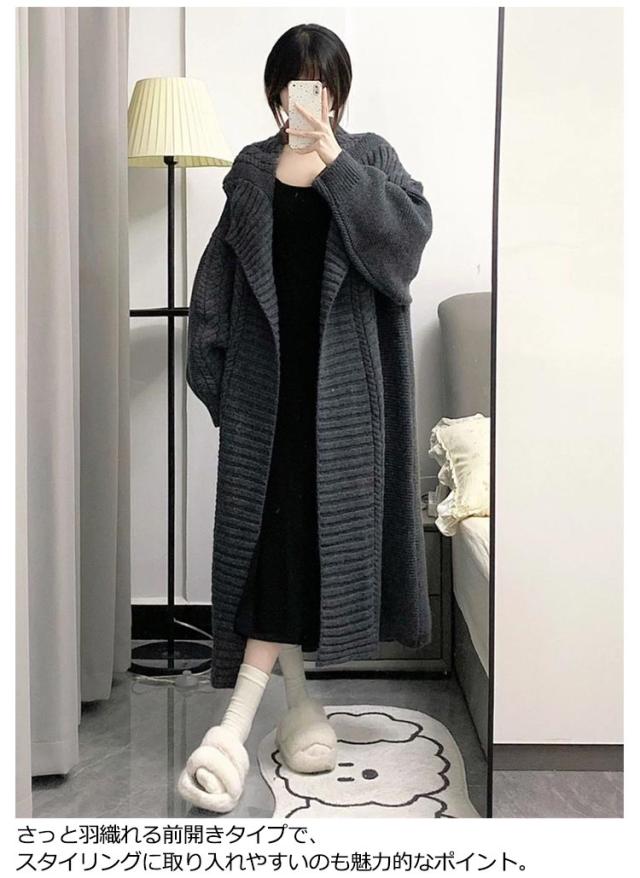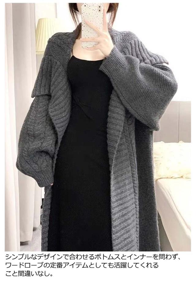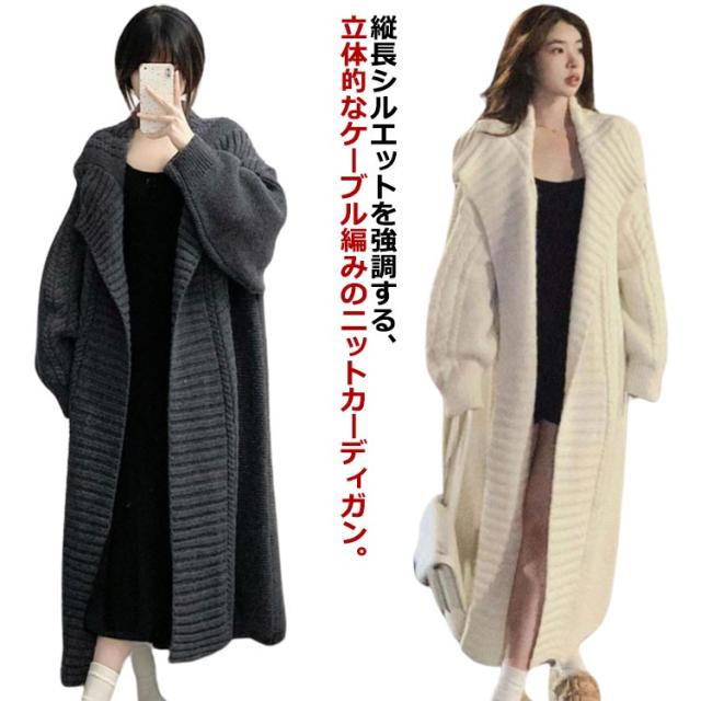 超ロング カーディガン レディース カーデ ニットカーディガン ロングカーディガン ロング マキシ ニット ロングカーデ アウター ざっくり ルーズ 長袖 ビッグ ドロップショルダー ゲーブル編み 大きいサイズ 秋 冬 秋冬 厚手 羽織 体型カバー 暖かい