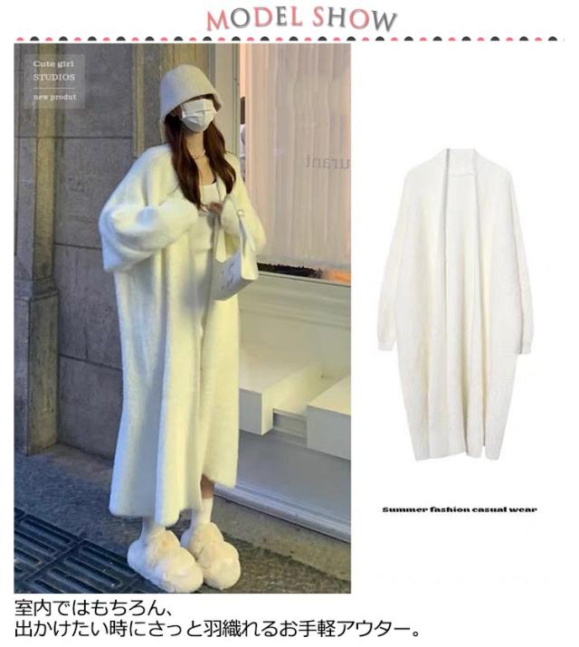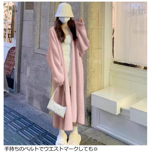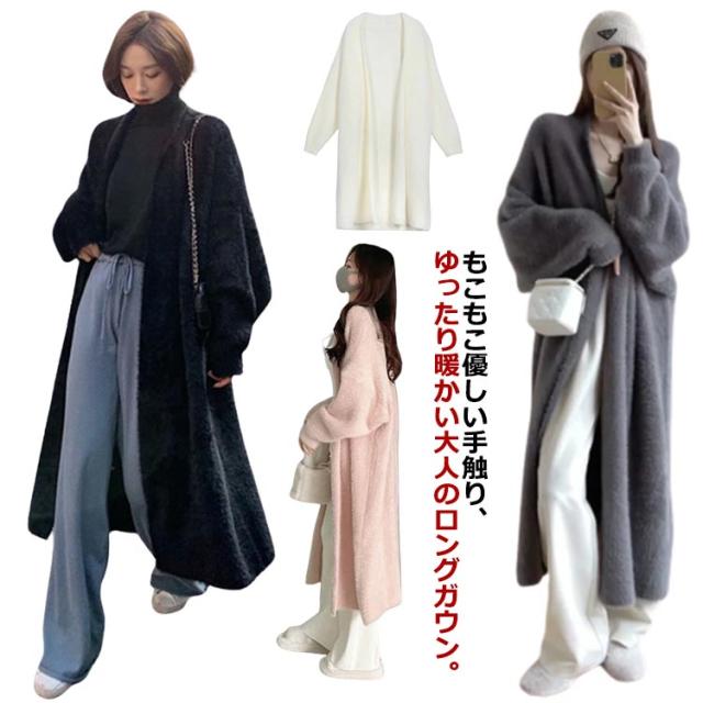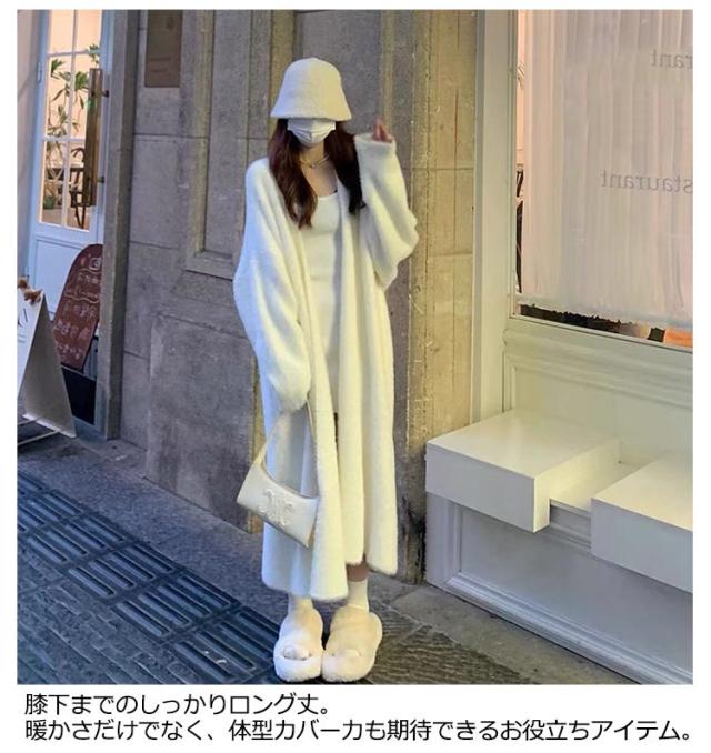ロングカーディガン 秋冬 レディース カーデ ニットカーディガン ニット もこもこ 厚手 ゆったり ロング ドロップショルダー 前開き トップス アウター 大人 可愛い カジュアル おしゃれ エレガント 体型カバー 暖かい