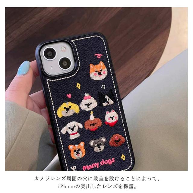 ケース ワンちゃん シーズー iPhoneケース iPhone マルチーズ ケース 刺繍 コーギー iPhone15 デニム カバー ビションフリーゼ 柴犬 犬 スマホカバー iPhone スマホケース デニム 衝撃保護 耐衝撃 iPhone15Pro iPhone15ProMax iPhone14 iPhone13 iPhone12 スマホケース