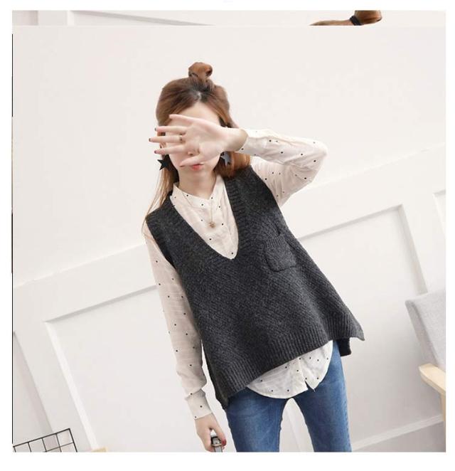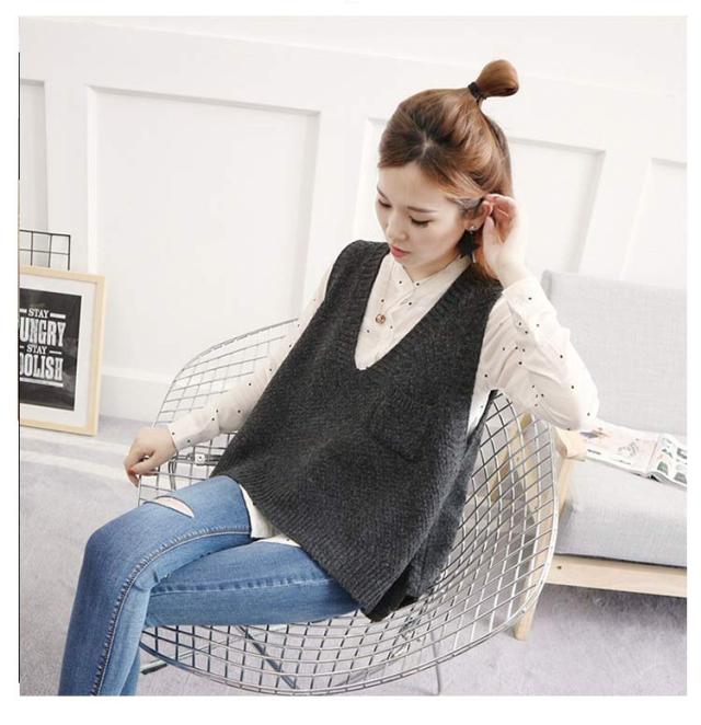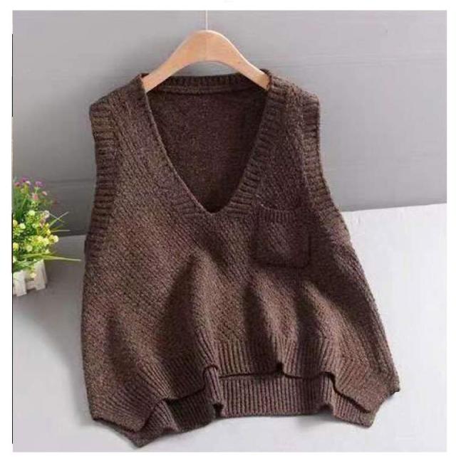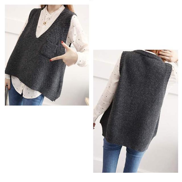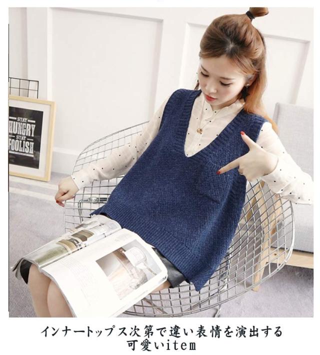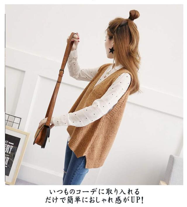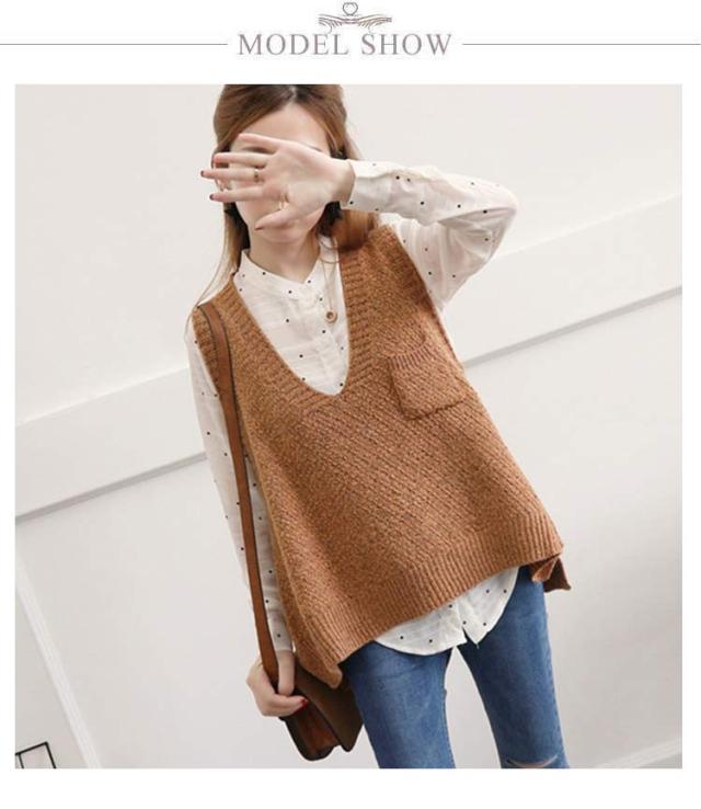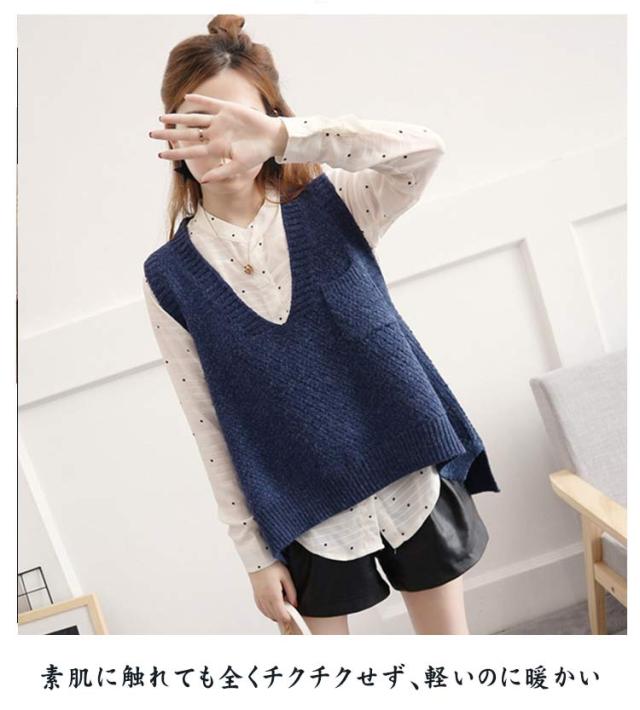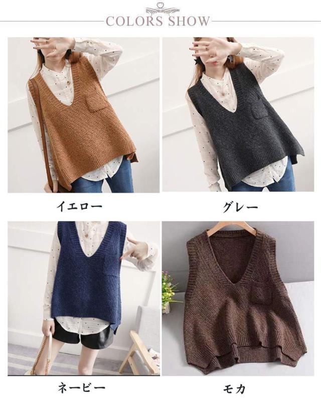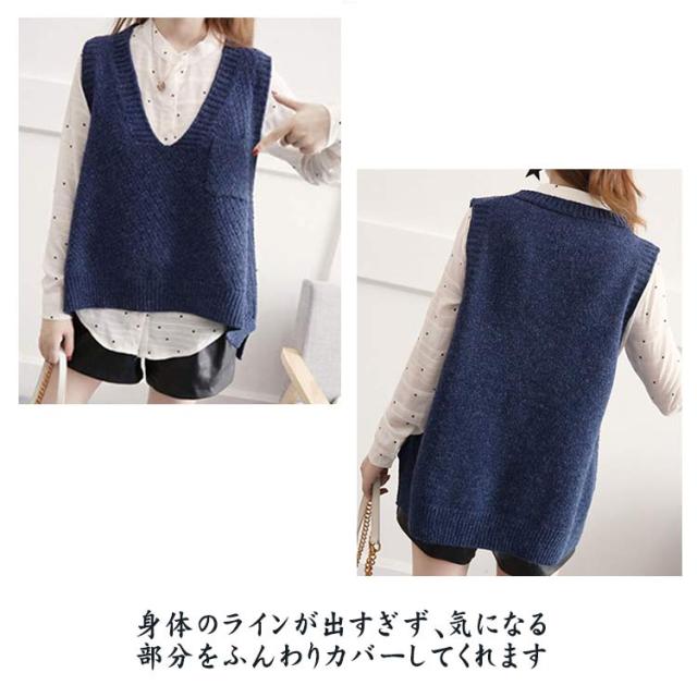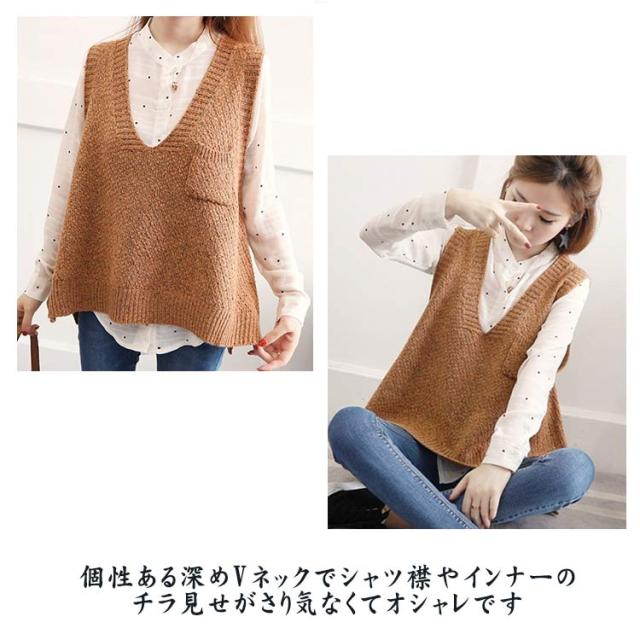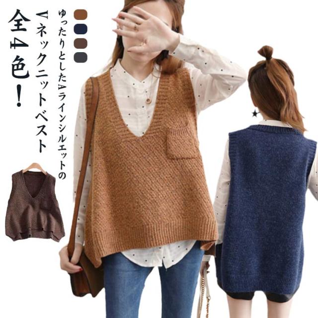 Aライン ニットベスト プルオーバーベスト Vネック ニット ベスト ポケット付き ゆったり シンプル お洒落