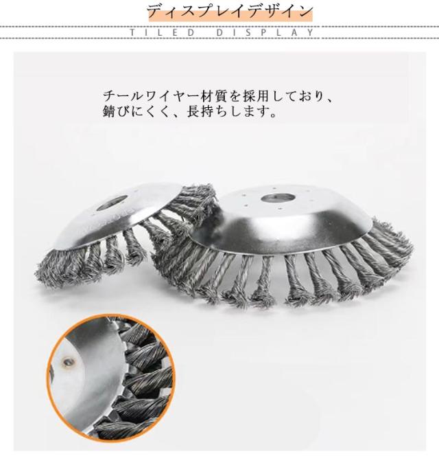 | 切れ味抜群!新型式の草刈機用チップソーです。 チールワイヤー材質を採用しており、錆びにくく、長持ちします。 高性能、優れた柔軟性、芝刈り機取り付けて作業効率を向上させることができます。 庭、歩道の草刈だけではなく、レンガの縫い目などに苔取り、バリ取り、粉塵除去、酸化物除去、クリーニングなどにも適しています。 付属部品が付き、取り付けが苦手な方でも問題なく行えます。 | |