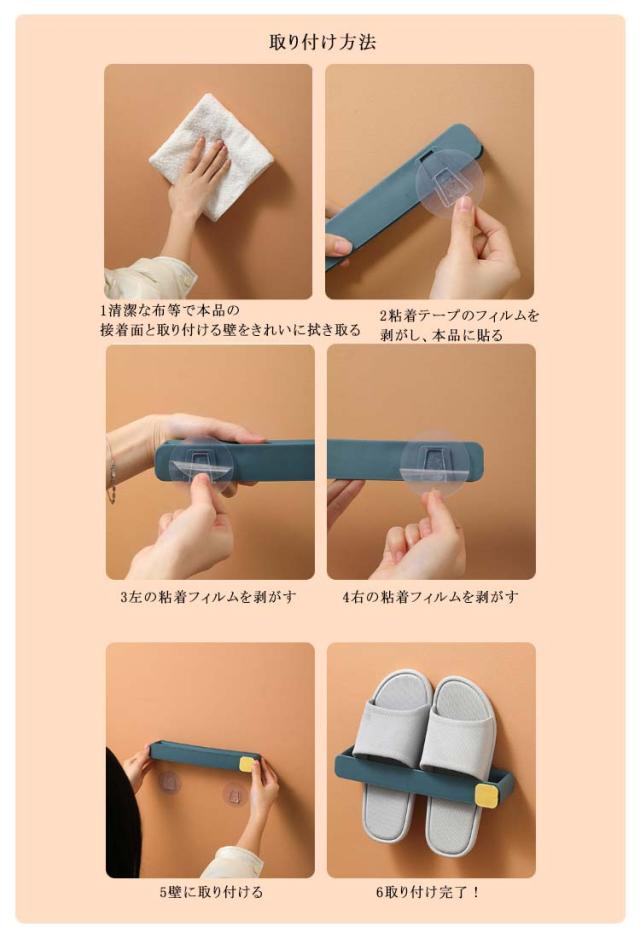| スリッパ収納 2個セット 4カラー 収納場所は自由自在、好きなところに貼れる 壁掛けタイプで省スペース 靴箱の扉の裏の空いているスペースや壁に貼り付けられるので、場所を取らずすっきり収納! 使い方いろいろ お家でのさまざまなシーンでご利用いただけます。インテリアのワンポイントに♪ | |