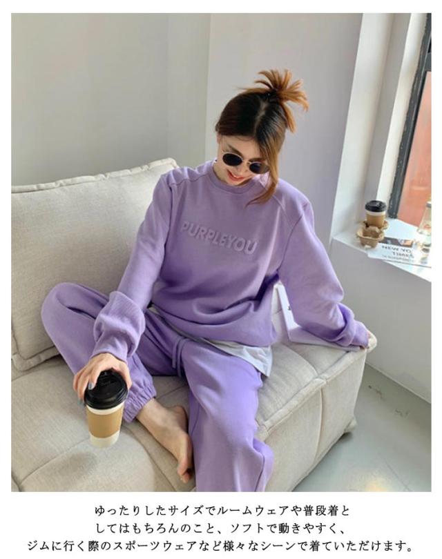 ルームウェア 韓国 レディース セットアップ 上下セット オシャレ 韓国ファッション エンボス加工 ロゴ スウェット パジャマ 長袖 パンツ ボトムス あったか 秋 冬 春 秋冬 防寒 大きいサイズ 大人可愛い 修学旅行 外出 スポーツウェア