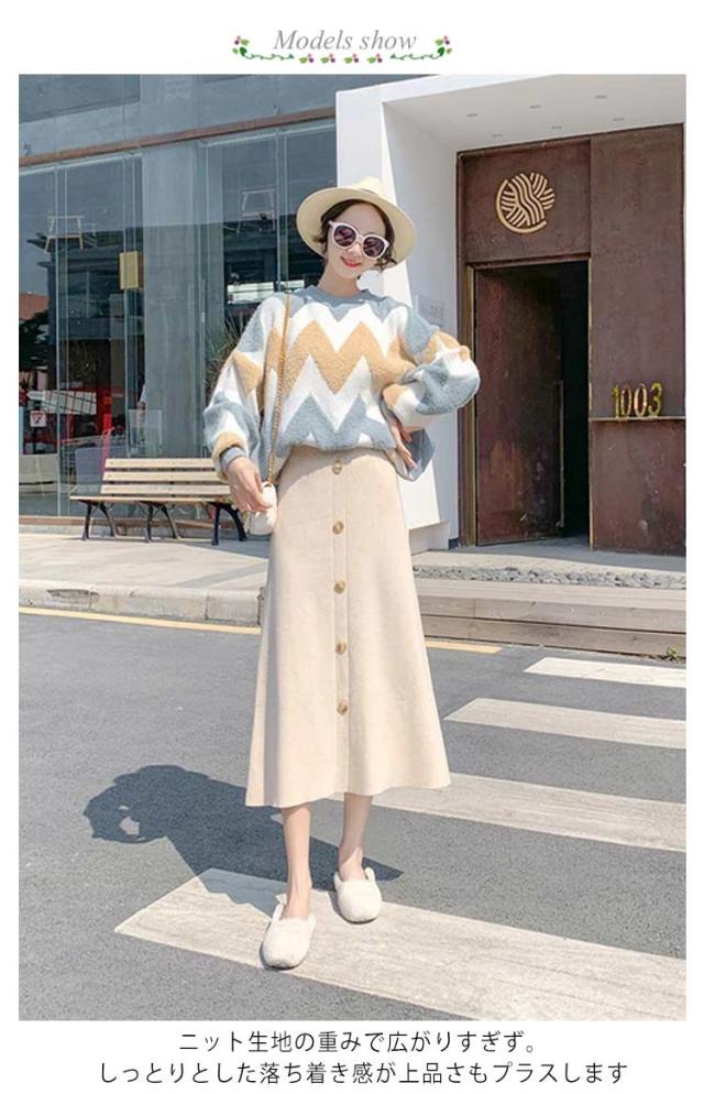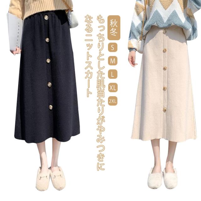 ニット フレアスカート レディース ニットスカート スカート ロングスカート 冬 秋冬 ミディアム Aライン フレア ミモレ丈 伸縮 ストレッチ きれいめ 体型カバー ボトムス 黒 着回し カジュアル 20代 30代 40代 50代 大人っぽい 通勤 デート お出かけ 送料無料