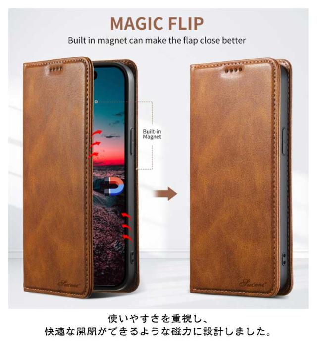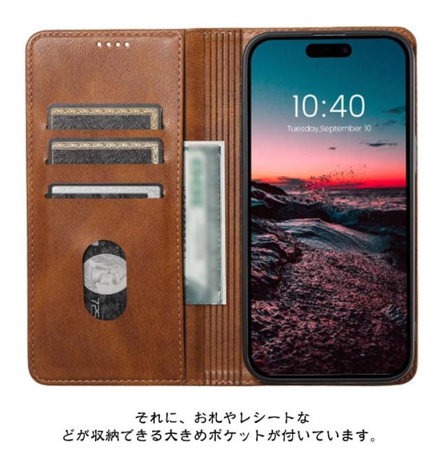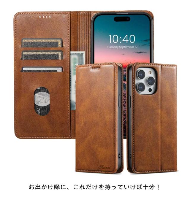 iPhone15 ケース スマホケース マグネット内蔵 薄型 スリム 手帳型 iPhoneケース 手帳型ケース カード収納 カード入れ スタンド機能 衝撃保護 スマホカバー PU レザー 手帳型ケース