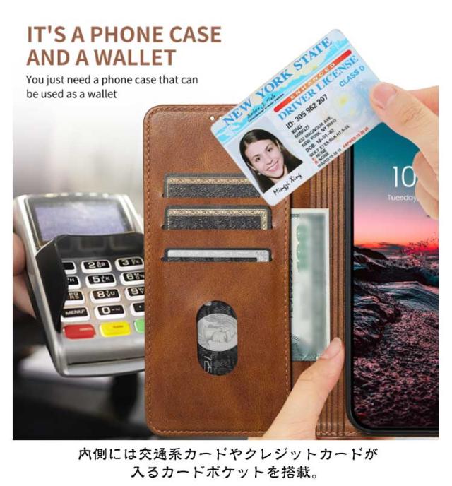 | 【対応機種】iPhone 【素材】PUレザー TPU 【セット内容】スマホケース(iPhone本体は同梱されておりません) 【特徴】 ポケットやバッグの中にもスッキリ収納できる薄型手帳ケース。 内側には交通系カードやクレジットカードが入るカードポケットを搭載。 それに、お札やレシートなどが収納できる大きめポケットが付いています。 お出かけ際に、これだけを持っていけば十分! スマホを横置きできるスタンド機能で長時間の動画視聴もらくらく!新幹線、飛行機の中での暇つぶしに最適です。 使いやすさを重視し、快適な開閉ができるような磁力に設計しました。 上品な質感のPUレザーを使用し、触り心地や耐久性も抜群。 カメラレンズ周囲の穴に段差を設けることによって、iPhoneの突出したレンズを保護。 ストラップホールを搭載しており、お気に入りストラップを付けられます。 | |