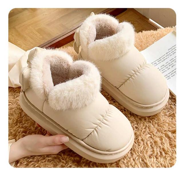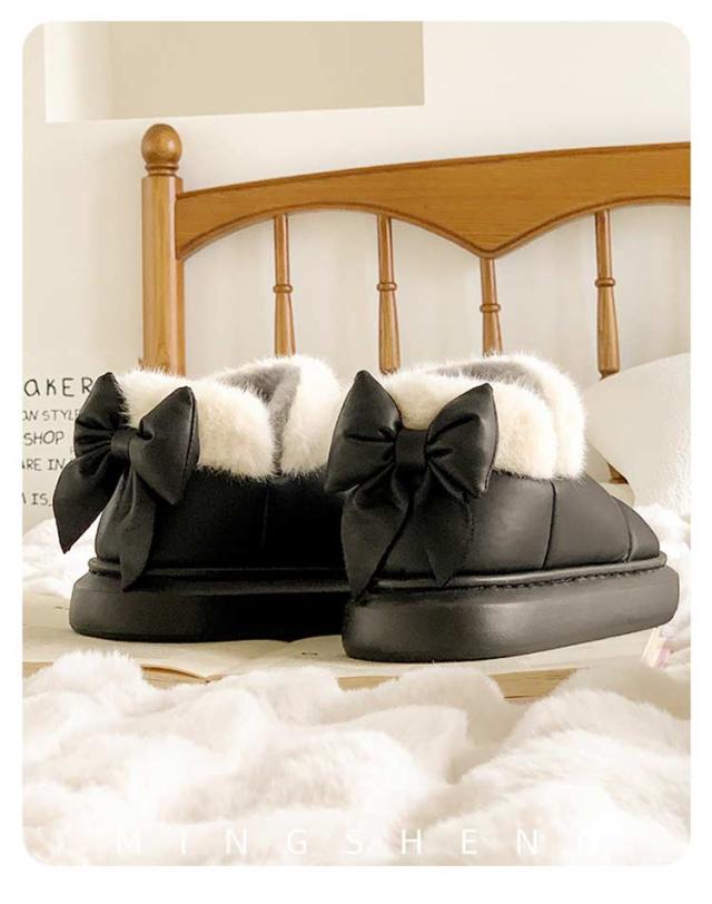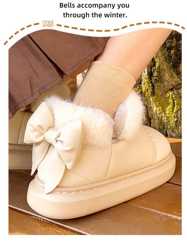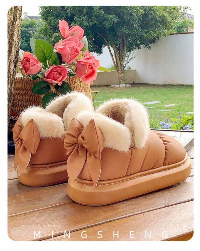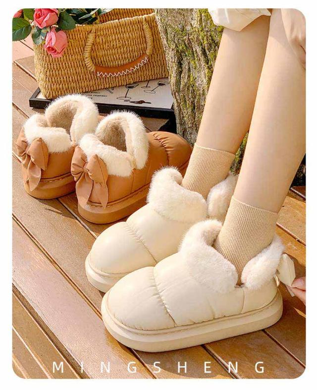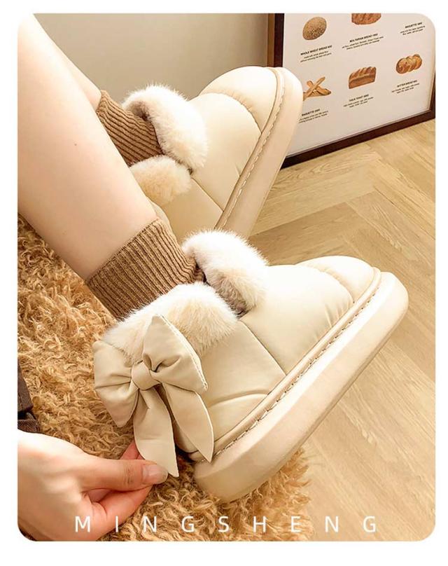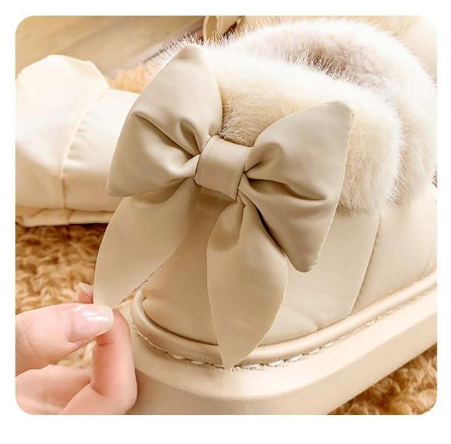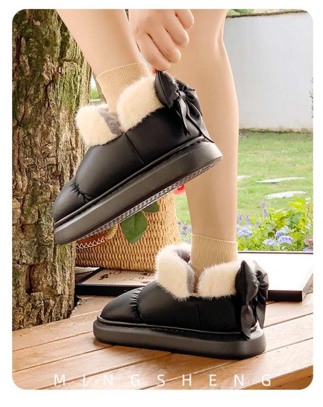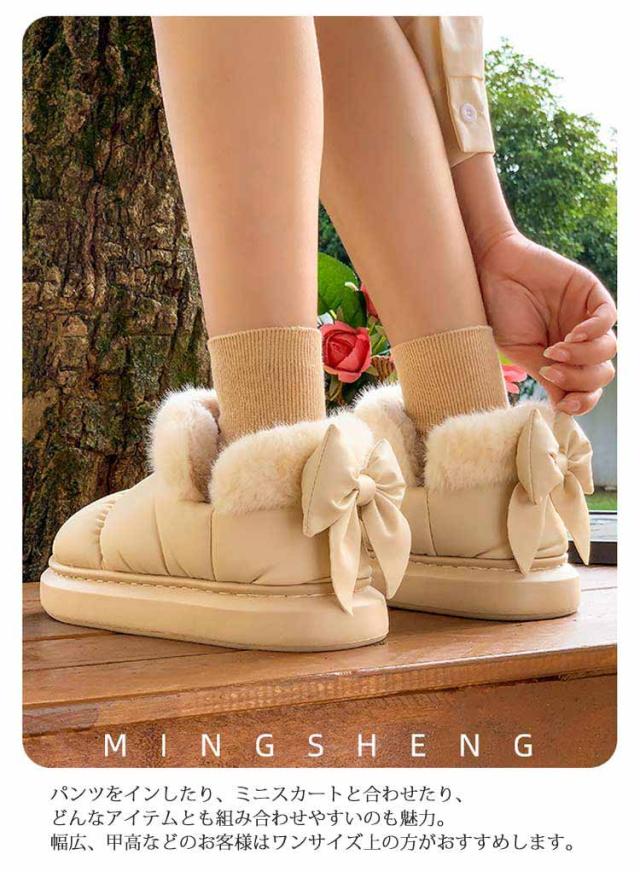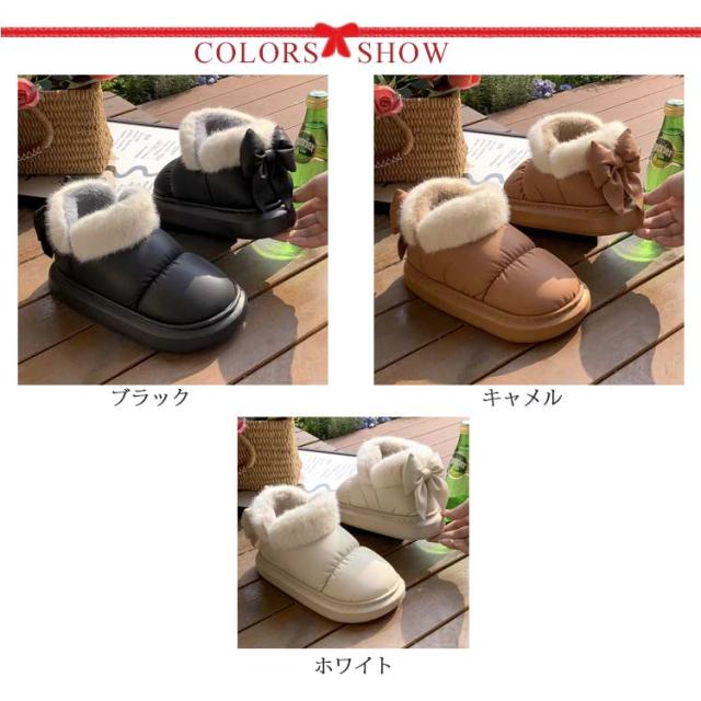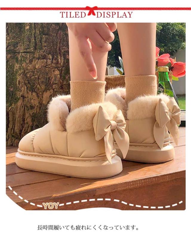 ブーツ ショート丈 リボン付き 撥水 厚底 可愛い SNS風 裏起毛 もこもこ 防寒 暖かい 冬 リボンムートンブーツ 冬靴 軽量 滑り止め シューズ 婦人靴 女性 雪靴 内ボア 履きやすい 歩きやすい 通勤 通学 送料無料