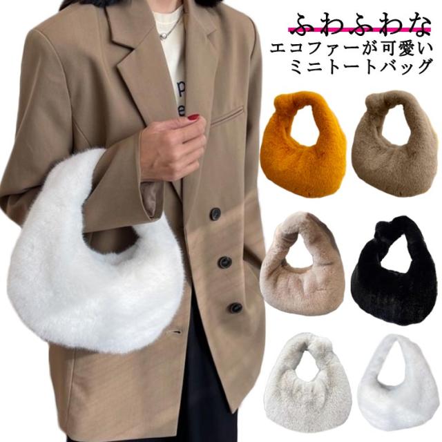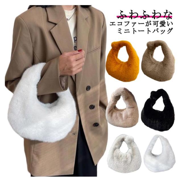 ファー トートバッグ レディース エコバック ミニ 小さめ ミニトートバッグ ふわふわ もこもこ ミニトート バッグ かばん 鞄 小さめ エコバッグ ミニバッグ トート マルシェバッグ サブバッグ おしゃれ 秋冬