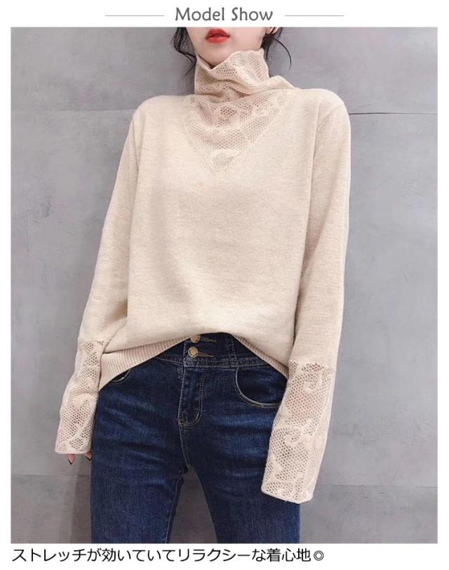 ハイネック トップス ニット レディース ニットプルオーバー カットソー ドルマン 長袖 透け感 上品 高級感 秋冬 可愛い 細見せ お洒落 体型カバー トップス 重ね着 シースルー ストレッチ 大人 女性 S M L 無地 シンプル レイヤード ミディアム丈 ギフト 通勤 送料無料