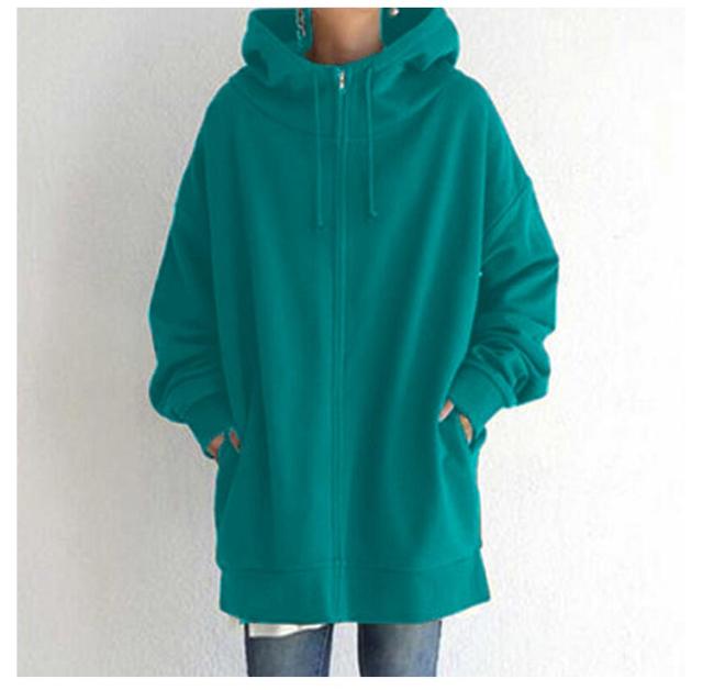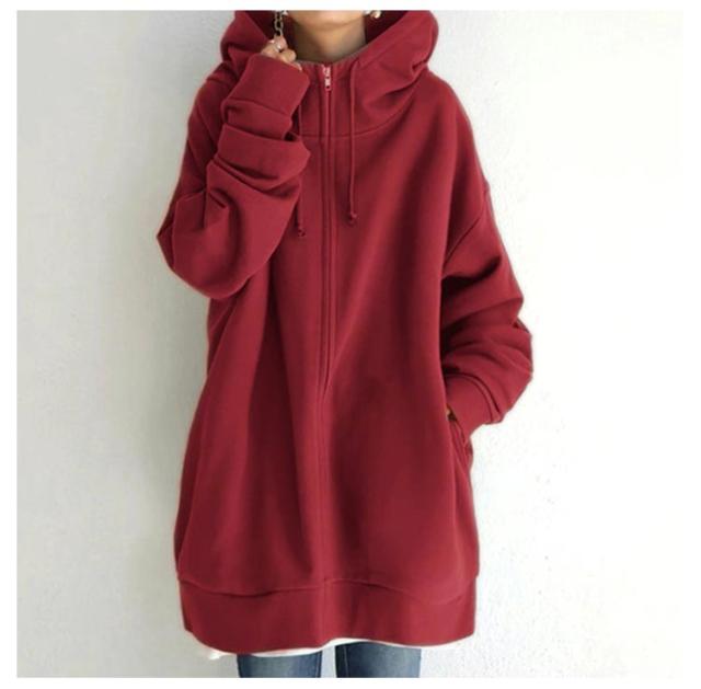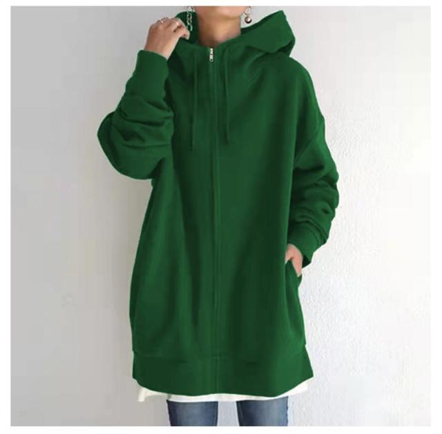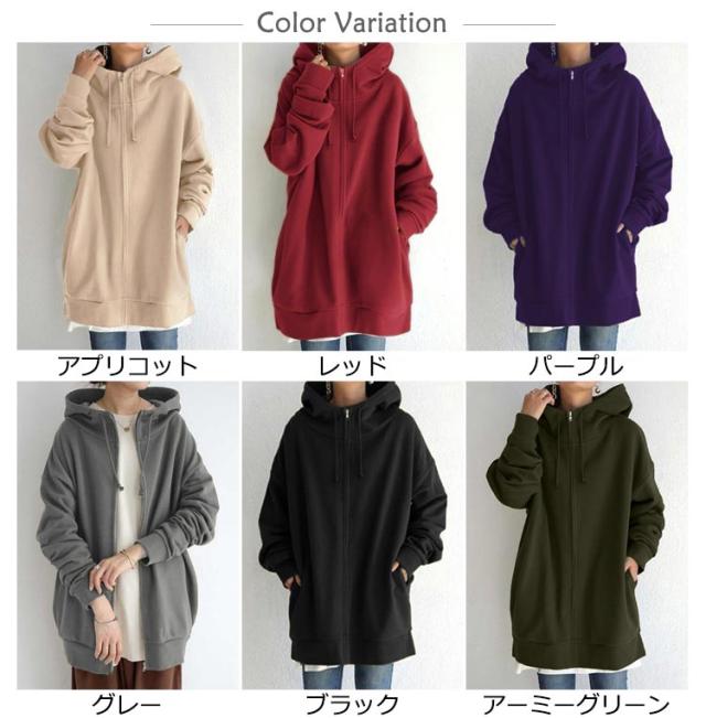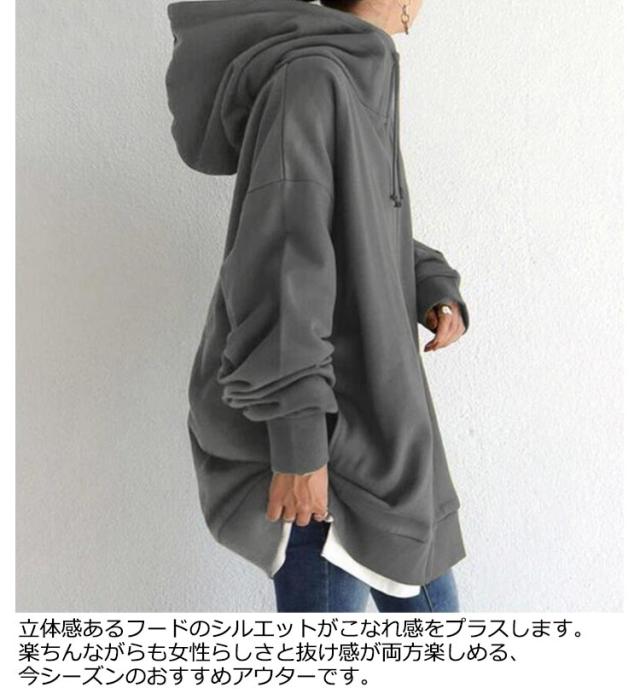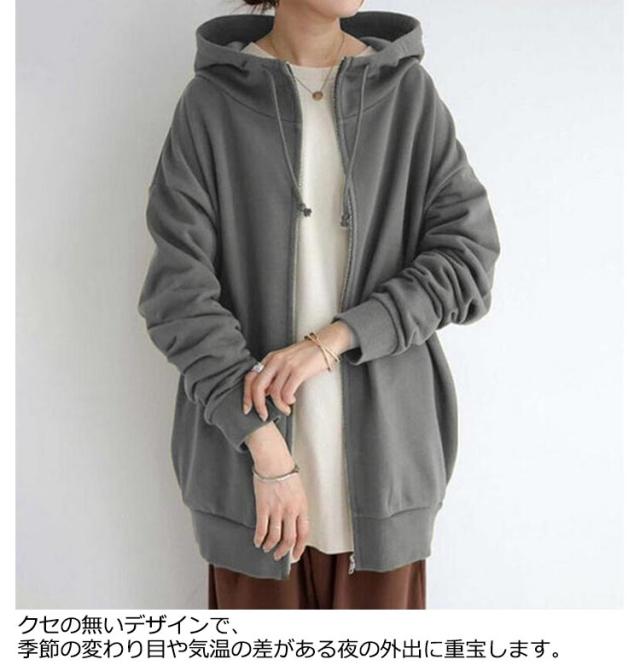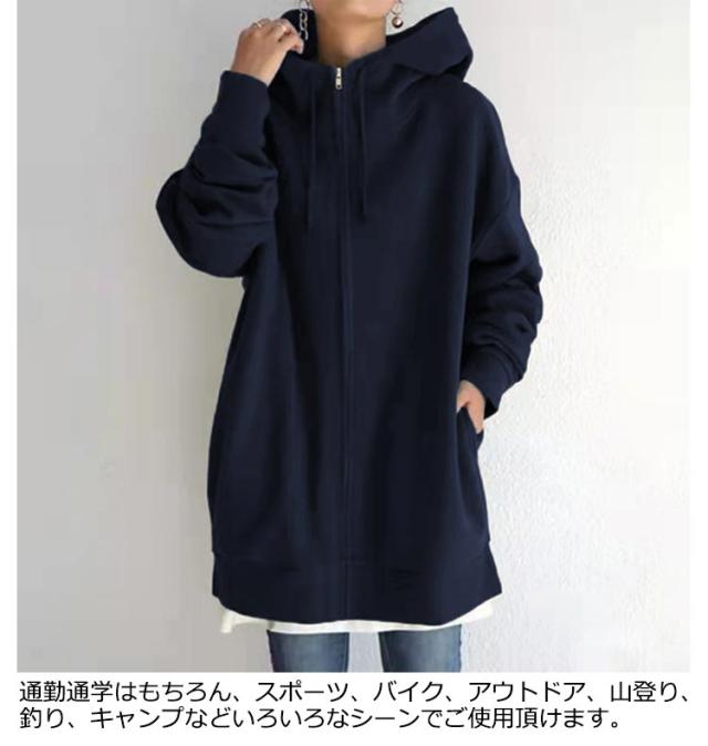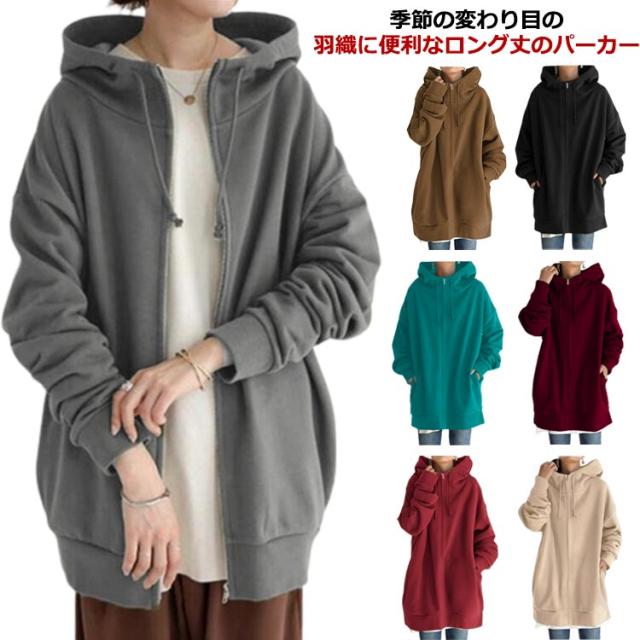 ロング丈 ジップパーカー 大きいサイズ ジャケット コート 体型カバー カジュアル おしゃれ 長袖 トップス 無地 シンプル ミドル丈 ゆったり ポケット付き フード付き 通勤 通学 プレゼント ギフト 送料無料