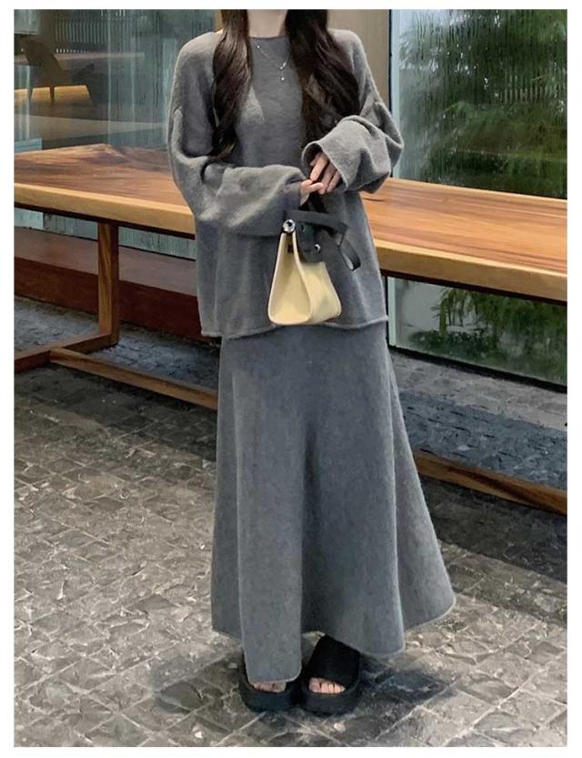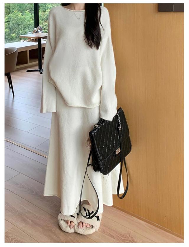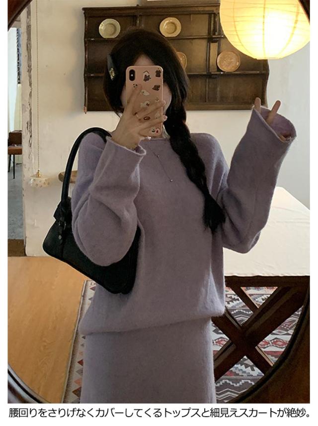 | ニットセットアップ 4色 フリーサイズ ゆったり着れます。 腰回りをさりげなくカバーしてくるトップスと細見えスカートが絶妙! 起毛した毛糸がほっこり暖かな風合い。 | |