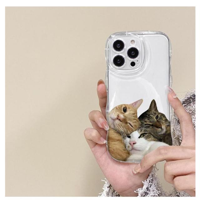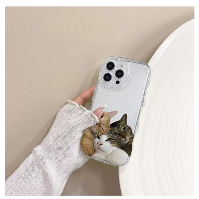 iPhone15 ケース iPhone15Pro ケース iPhone14 ケース iPhone15 ケース iPhone14 pro promax iPhone13 韓国 おしゃれ 可愛い かわいい ケース アニマル ネコ 猫 耐衝撃 ウエーブ クリアケース なみなみ うねうね 透明 送料無料