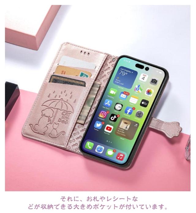 | 【対応機種】iPhone 【素材】PUレザー TPU 【セット内容】スマホケース(iPhone本体は同梱されておりません) 【特徴】 ワンちゃんと猫ちゃんの型押し模様で高級感たっぷり。 ポケットやバッグの中にもスッキリ収納できる薄型手帳ケース。 内側には交通系カードやクレジットカードが入るカードポケットを搭載。 それに、お札やレシートなどが収納できる大きめポケットが付いています。 お出かけ際に、これだけを持っていけば十分! スマホを横置きできるスタンド機能で長時間の動画視聴もらくらく!新幹線、飛行機の中での暇つぶしに最適です。 使いやすさを重視し、快適な開閉ができるような磁力に設計しました。 上品な質感のPUレザーを使用し、触り心地や耐久性も抜群。 カメラレンズ周囲の穴に段差を設けることによって、iPhoneの突出したレンズを保護。 | |
