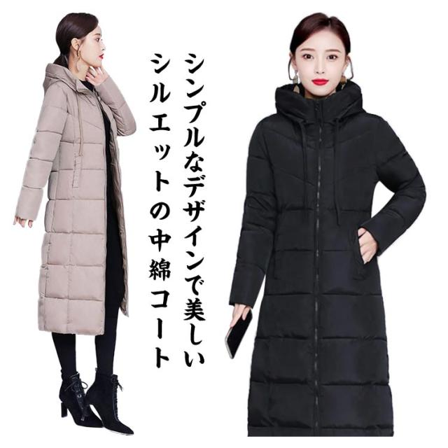 中綿コート レディース 中綿 ジャケット ロング丈 秋冬 アウター フード付き 軽い スリム 立ち襟 ロングコート ジャンパー 防寒 暖かい 大きいサイズ 保温 無地 あたっか きれいめ カジュアル 大人 通勤