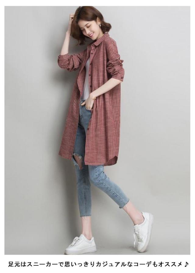 | 羽織としても使えるオーバーサイズボーダーロングシャツ。 気になるヒップラインをきちんとカバーしてくれる丈感なので安心◎ ワンピース風に着ても羽織としても使える2WAYタイプです。ロングシーズンで大活躍。 ゆったりシルエットなので、スキニーと合わせてメリハリのあるスタイルに 足元はスニーカーで思いっきりカジュアルなコーデもオススメ♪ | |