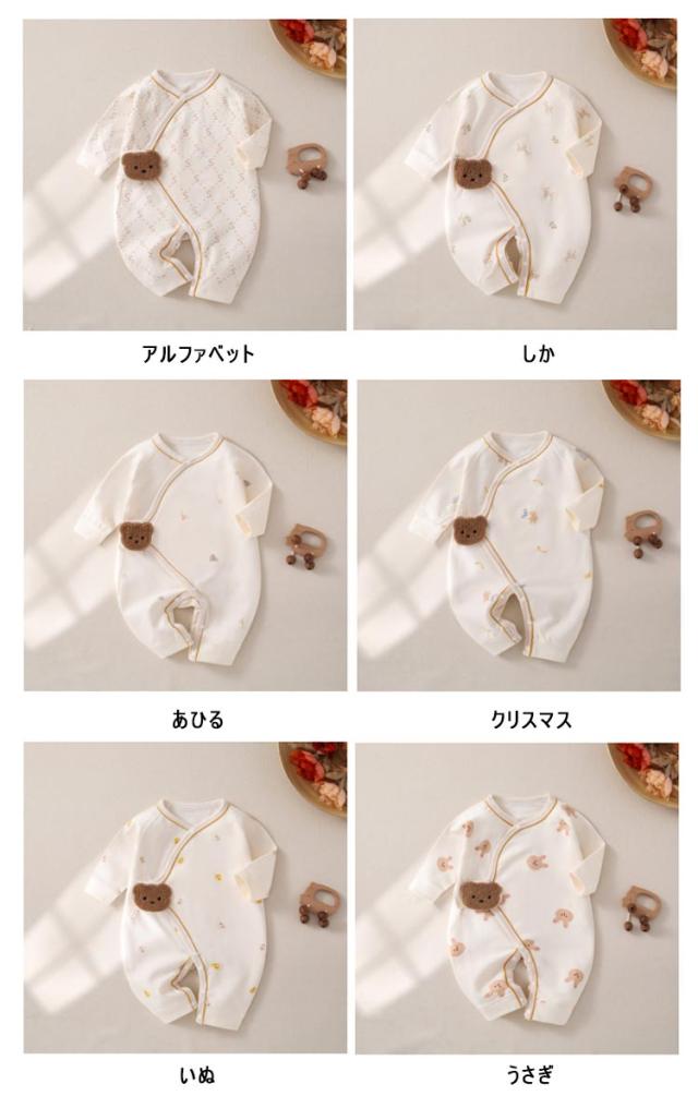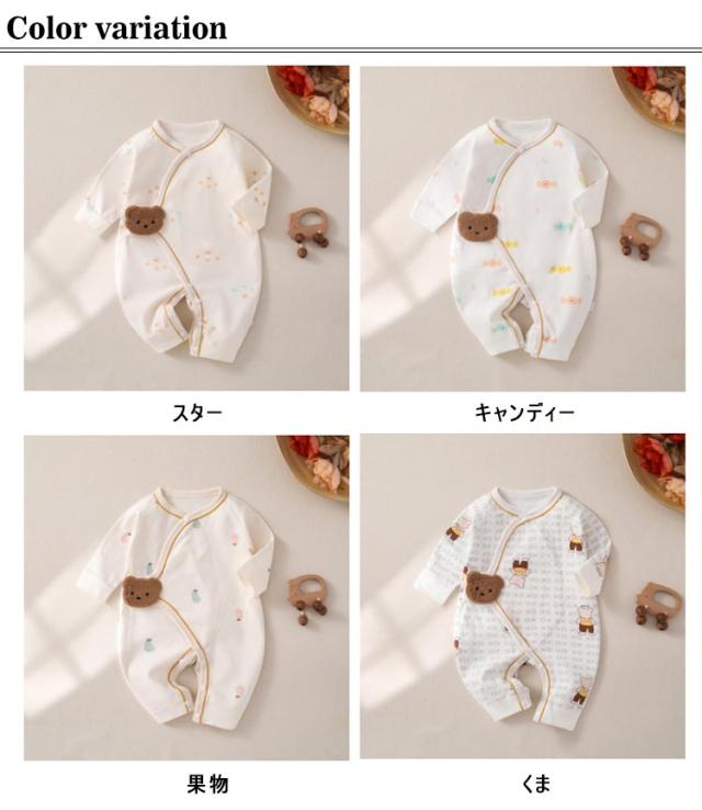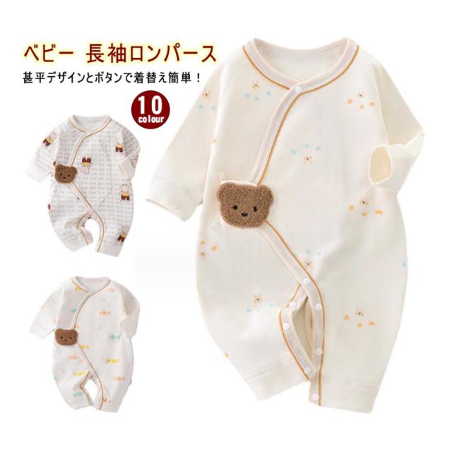 ベビー服 長袖 ロンパース カバーオール 新生児 ベビー服 甚平 男の子 女の子 ボタン 赤ちゃん 男の子 女の子 ユニ 前開き 全開き ミニオール 綿 肌着インナー かわいい リベビー カラバリ ルームウェア 出産祝い 秋冬服