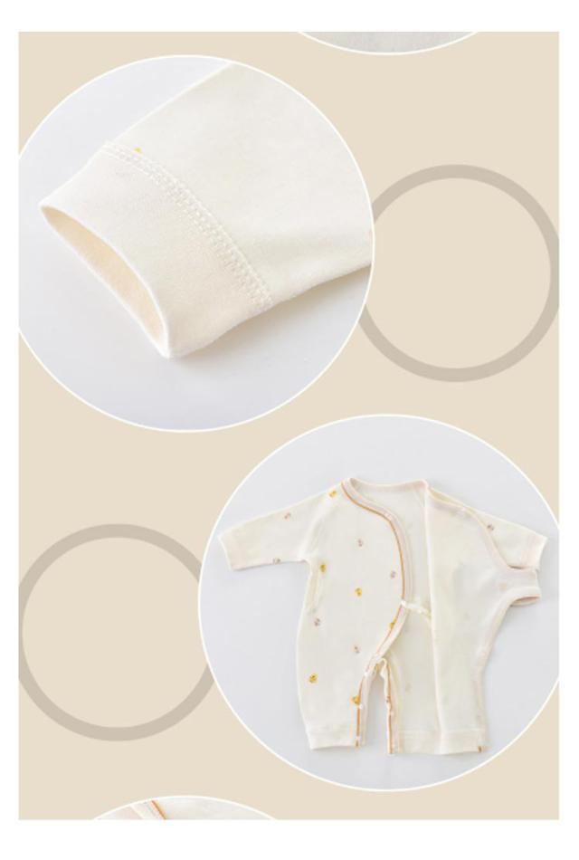| ベビー 長袖ロンパース 甚平デザインとボタンで着替え簡単! 首元から足首まで大きく開くボタン仕様 可愛さ全開のロンパーススタイルをもっと快適に♪ 綿のやさしい着心地。汗っかきの赤ちゃんも快適に過ごせます! 可愛らしさを引き立てるナチュラルカラー落ち着いたカラーとさりげない柄で上品な印象に♪ 下だけ開ければオムツ替えもラクラク♪ 重ね着していると大変なオムツ替えも…足元だけ開ければ簡単! よく動く赤ちゃんでも、ジップでサッと着脱できる♪ 春・秋・冬とたくさん着られる薄手の長袖 春・秋は、インナー+これ1枚。冬はベストやアウターをプラスして。 調節しやすいサラッとした長袖です。 | |
