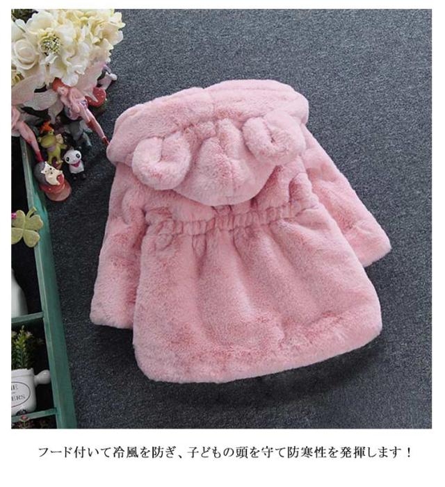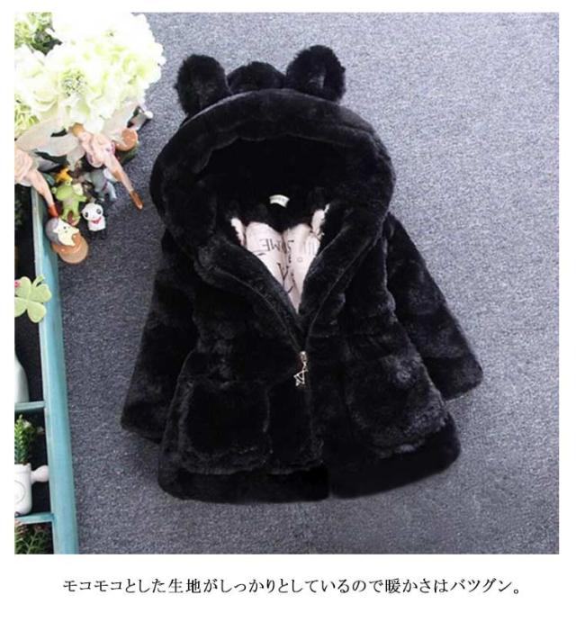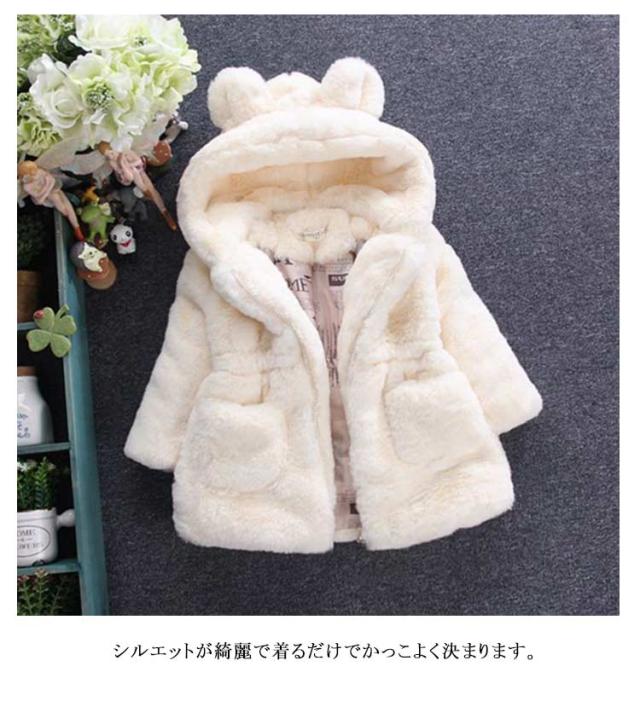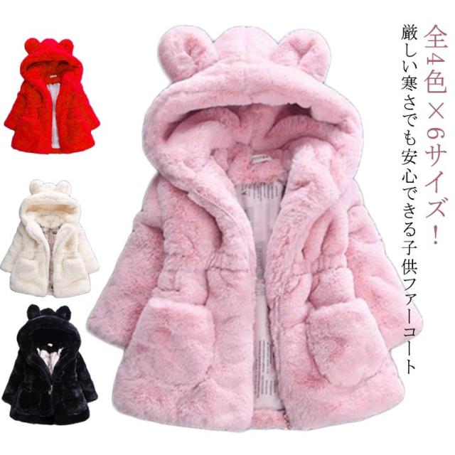 ファーコート キッズ服 あったか もこもこ ふわふわ 女の子 耳付き フード付き 可愛い 秋冬 ロングコート 無地 子供服 大きいサイズ 前ファスナー 防風 送料無料