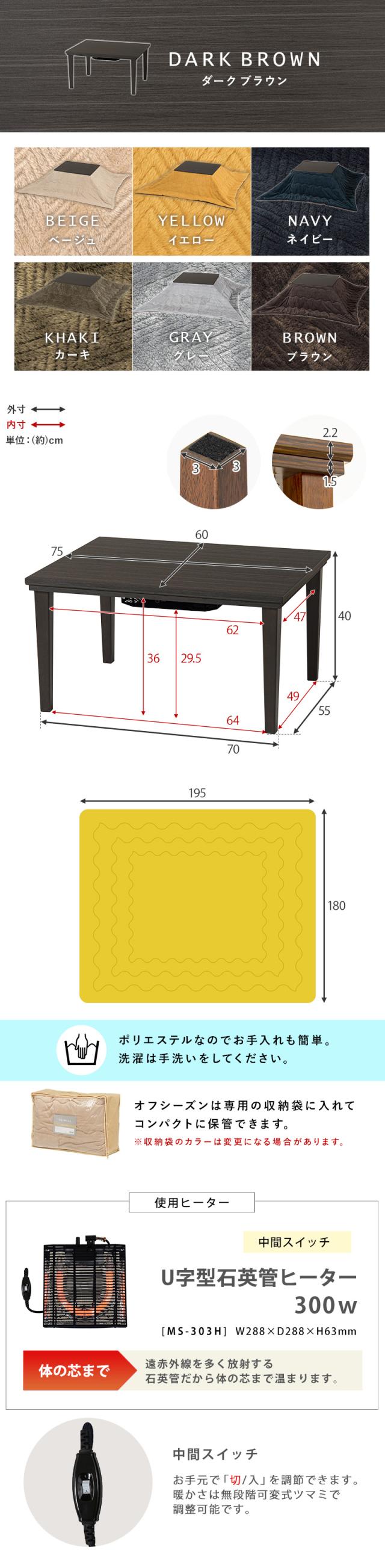 こたつ: 天板 合成樹脂化粧繊維板(メラミン) 脚部 ラバーウッド