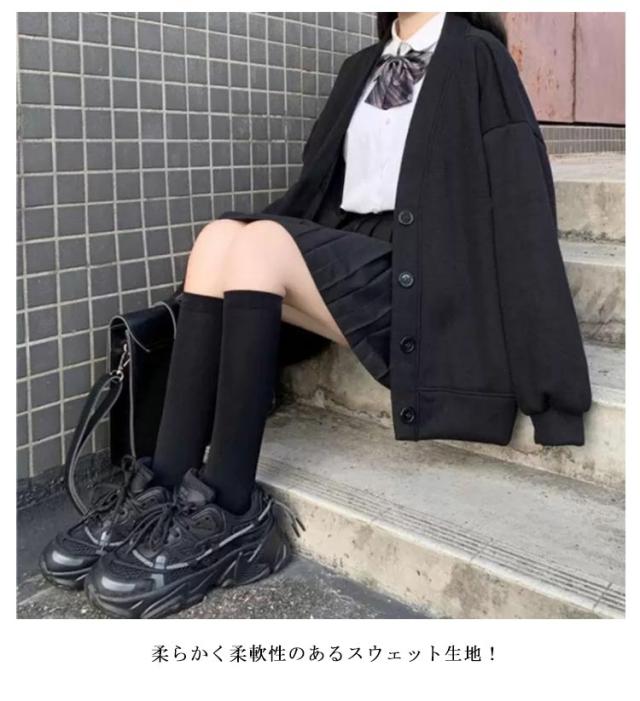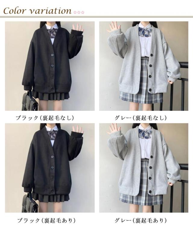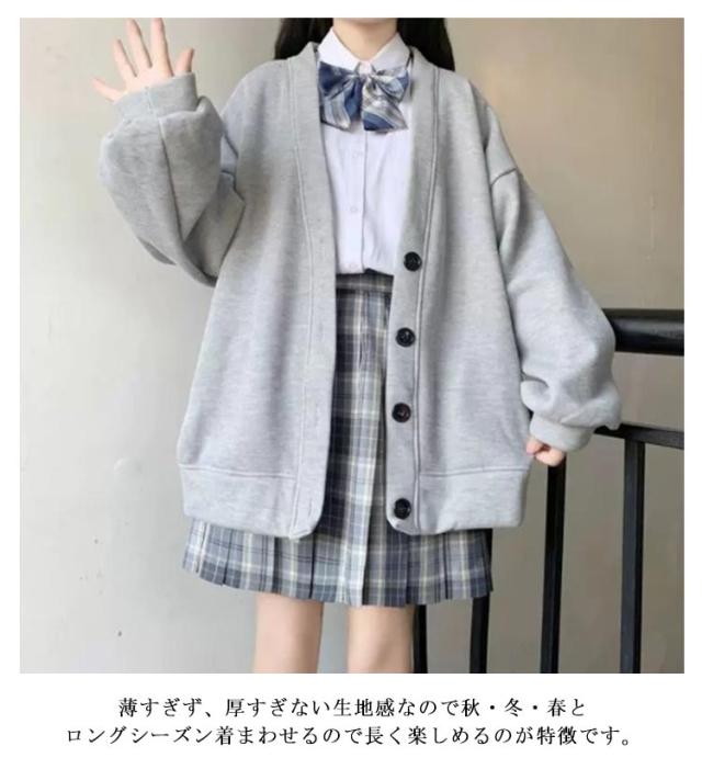 スウェット スクールカーディガン レディース 学生服 高校生 薄手&裏起毛 Vネック 無地 羽織り 中学生 アウター 黒 女子 制服 秋冬 春 大きいサイズ 送料無料
