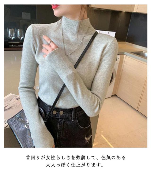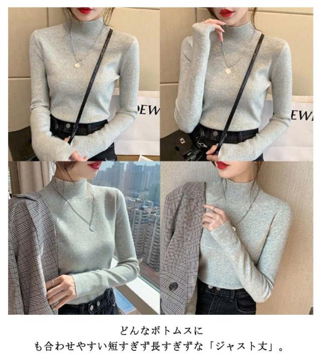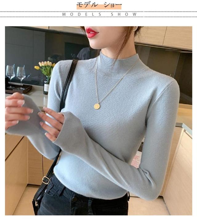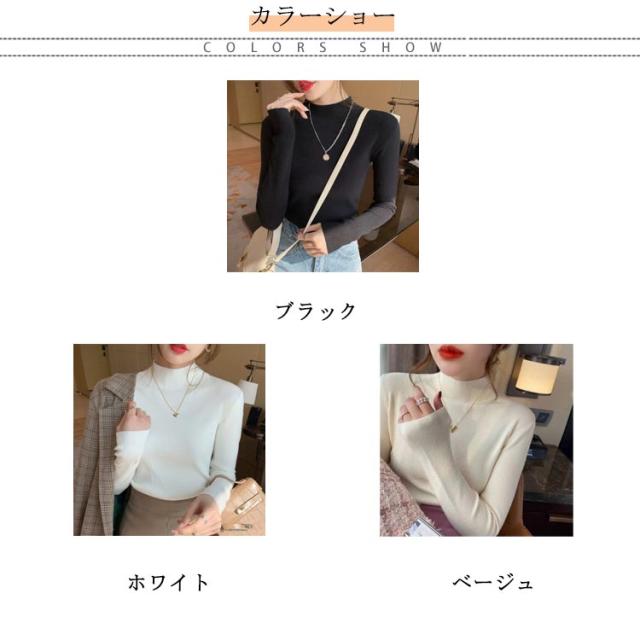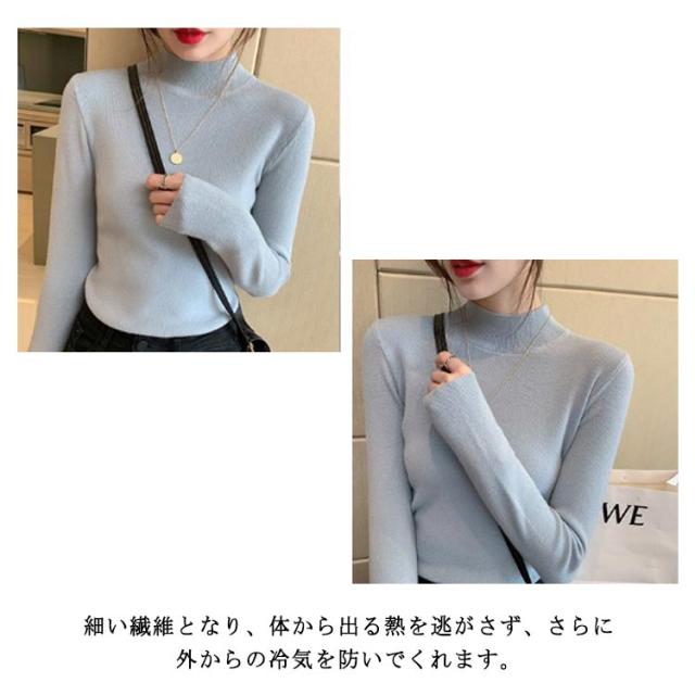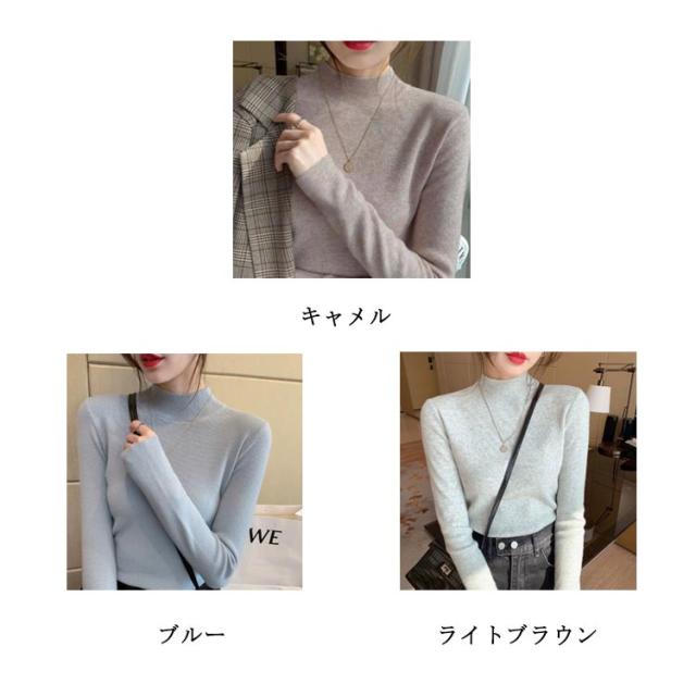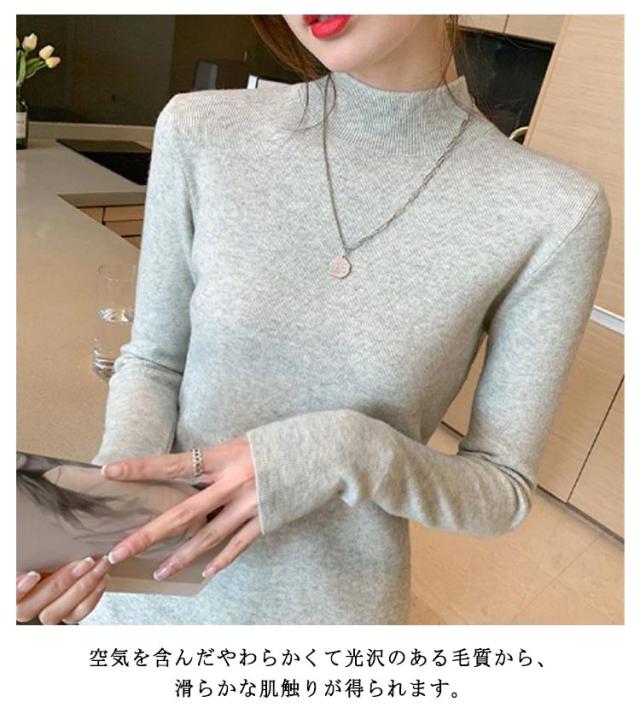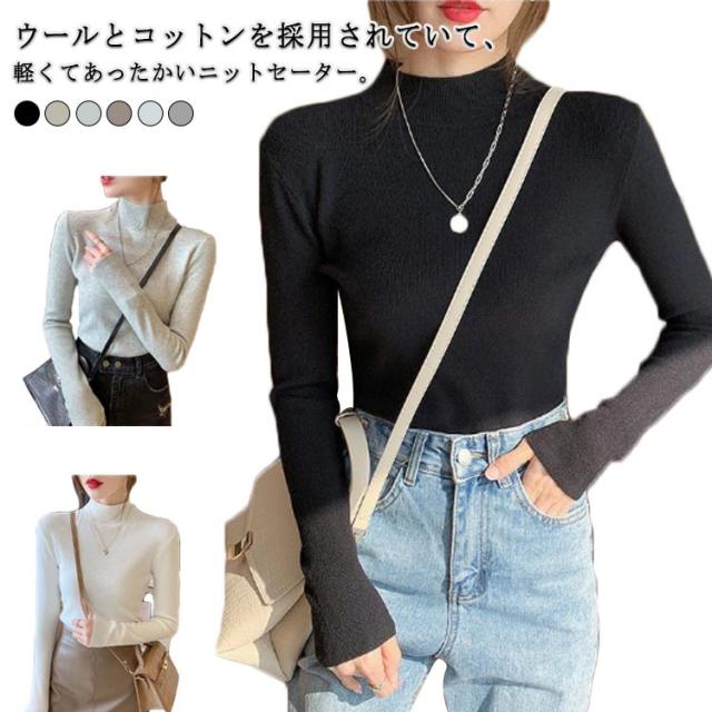 ウール混 ハイネック ニット トップス レディース インナー 重ね着 ニットセーター ストレッチ リブ レイヤード 柔らかい あったか 上質 軽い 薄手 無地 淡色 大人 カジュアル オフィス 大きいサイズ